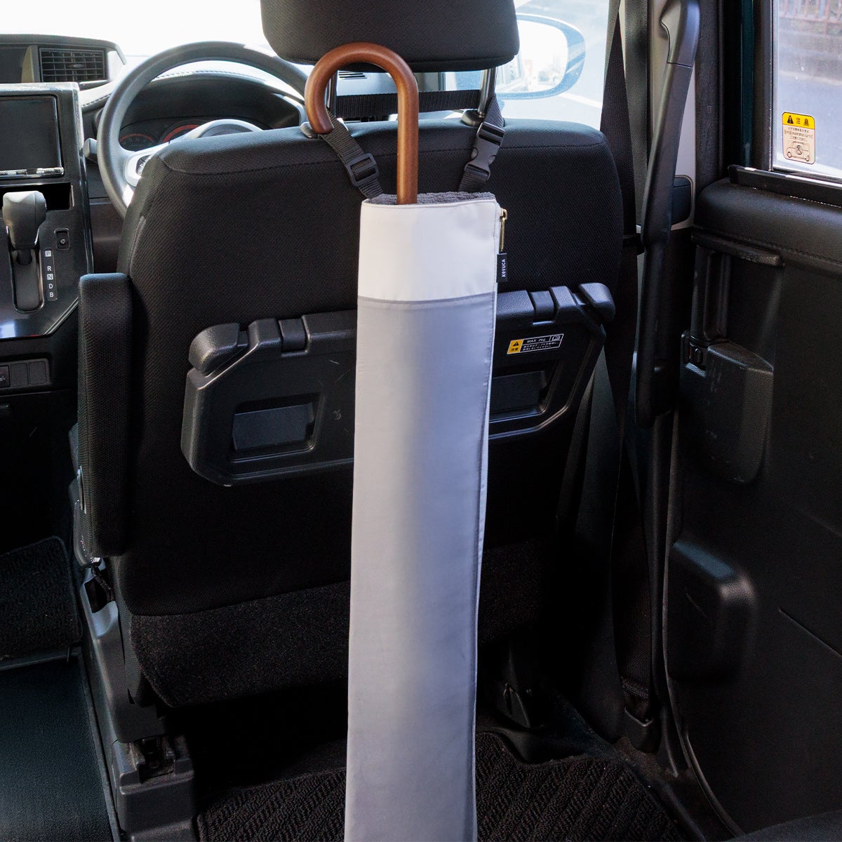 「広げて乾かせる吸水長傘ケース」は、車内での置き場に困る長傘をスマートに収納できるアイテム。内側は吸水素材を使用しており、濡れた傘を入れても周囲を濡らさず安心です。ファスナーが下まで開く設計により、使用後はがばっと広げて干すことができ、清潔さを保てます。