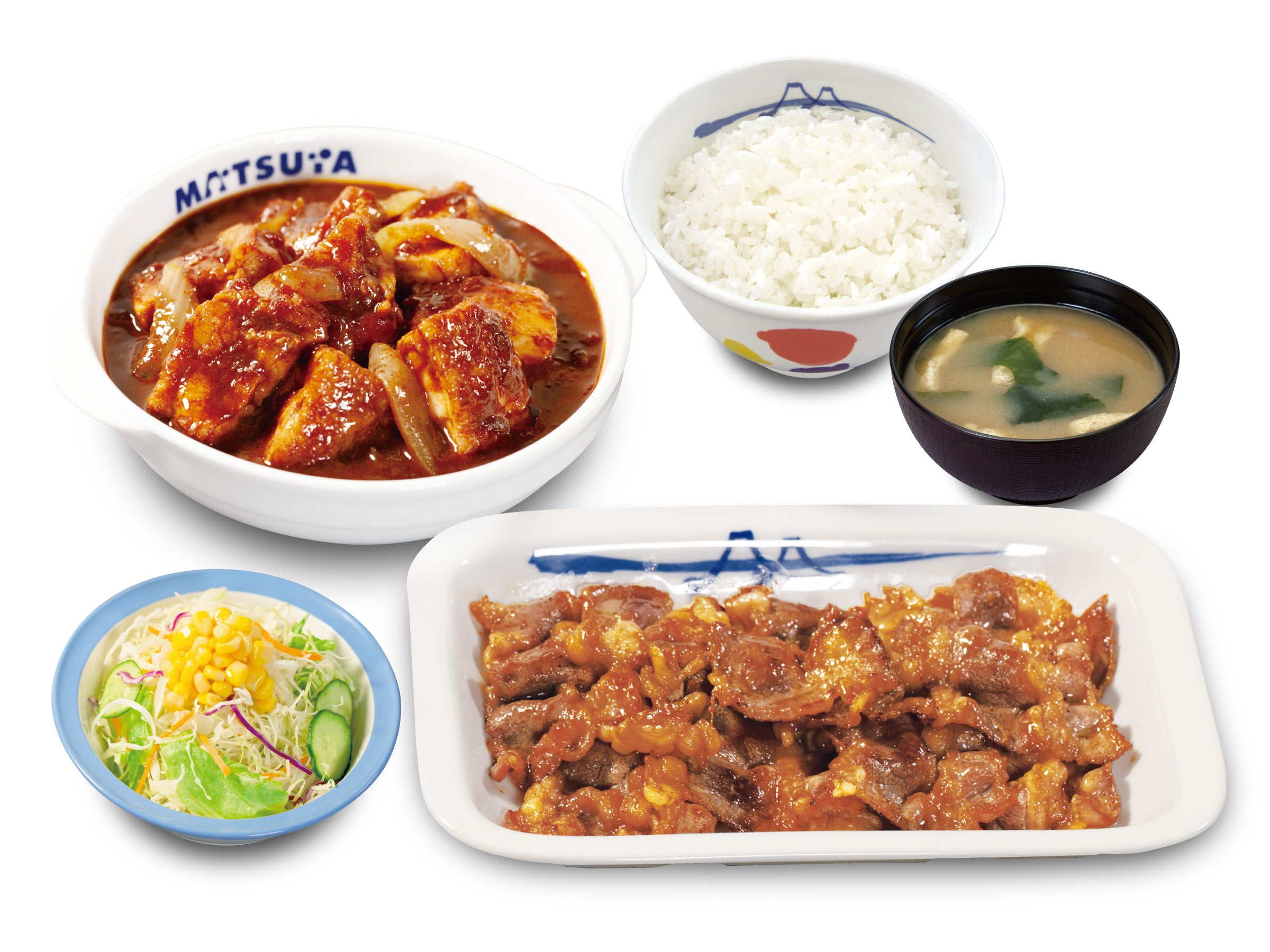 「チキンを入れてゴロゴロ感のあるカレーを作って欲しい。」という創業者の一言がきっかけで開発された「ごろごろ煮込みチキンカレー」。松屋カレーの歴史の中でもモンスターメニューとも称される人気のカレー、通称“ごろチキ”が80万食限定で復活します。スパイスの効いたオリジナルカレーソースに、鉄板でジューシーに焼き上げた鶏肉がごろごろ入った人気のカレーで、復活販売の度に多くのお客様に嬉しいお声をいただいておりました。さらに、ロングセラーの牛焼肉定食とカルビ焼肉定食との盛合せメニューも販売いたします。この機会にぜひ、ご賞味ください。