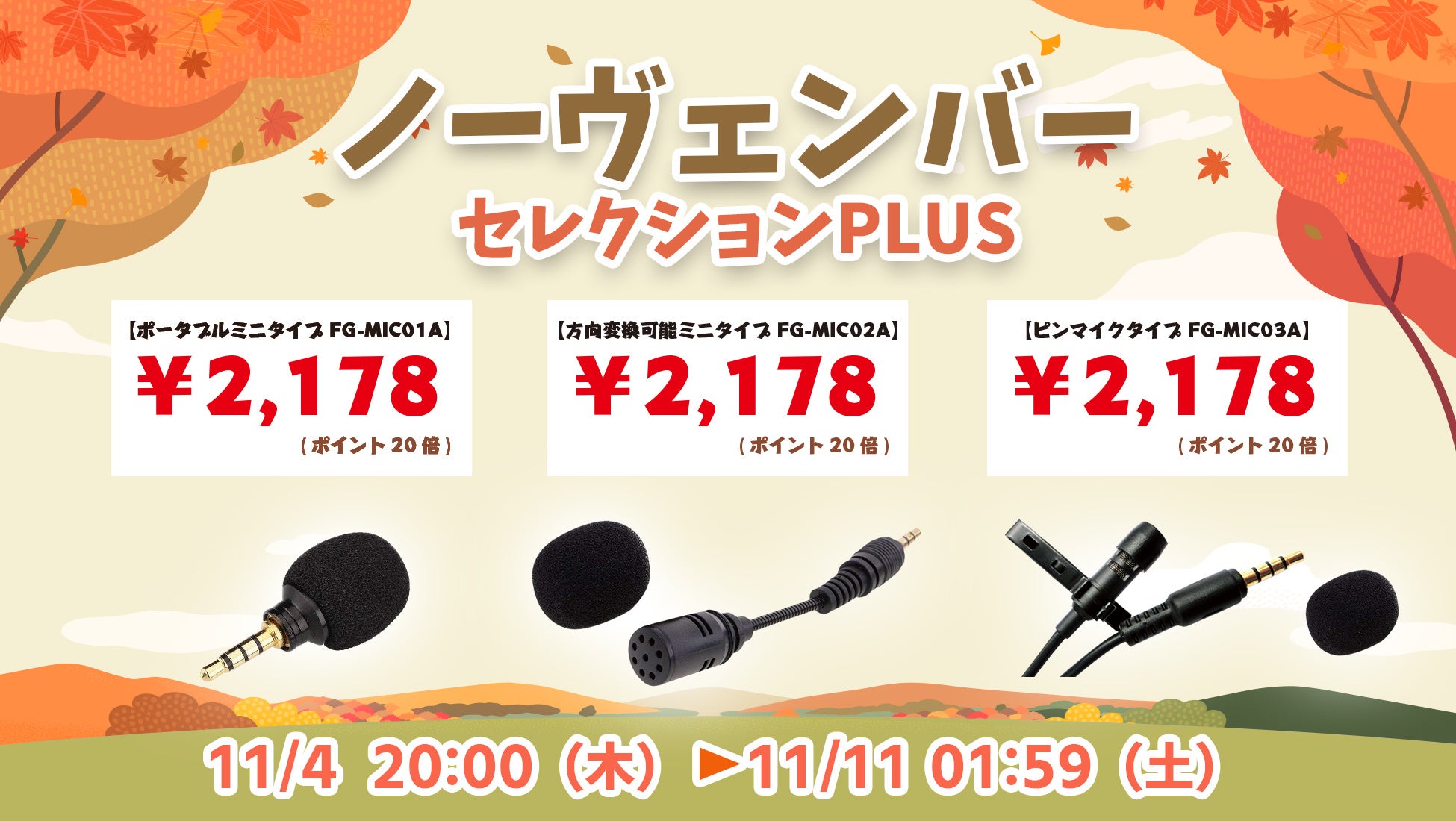 楽天「Show !t」小型・軽量!配信やリモート会議に最適な、3種類から選べるコンデンサーマイクを購入でポイント20倍プレゼント。さらに11月4日(水)20時開始、楽天お買い物マラソンに参加。