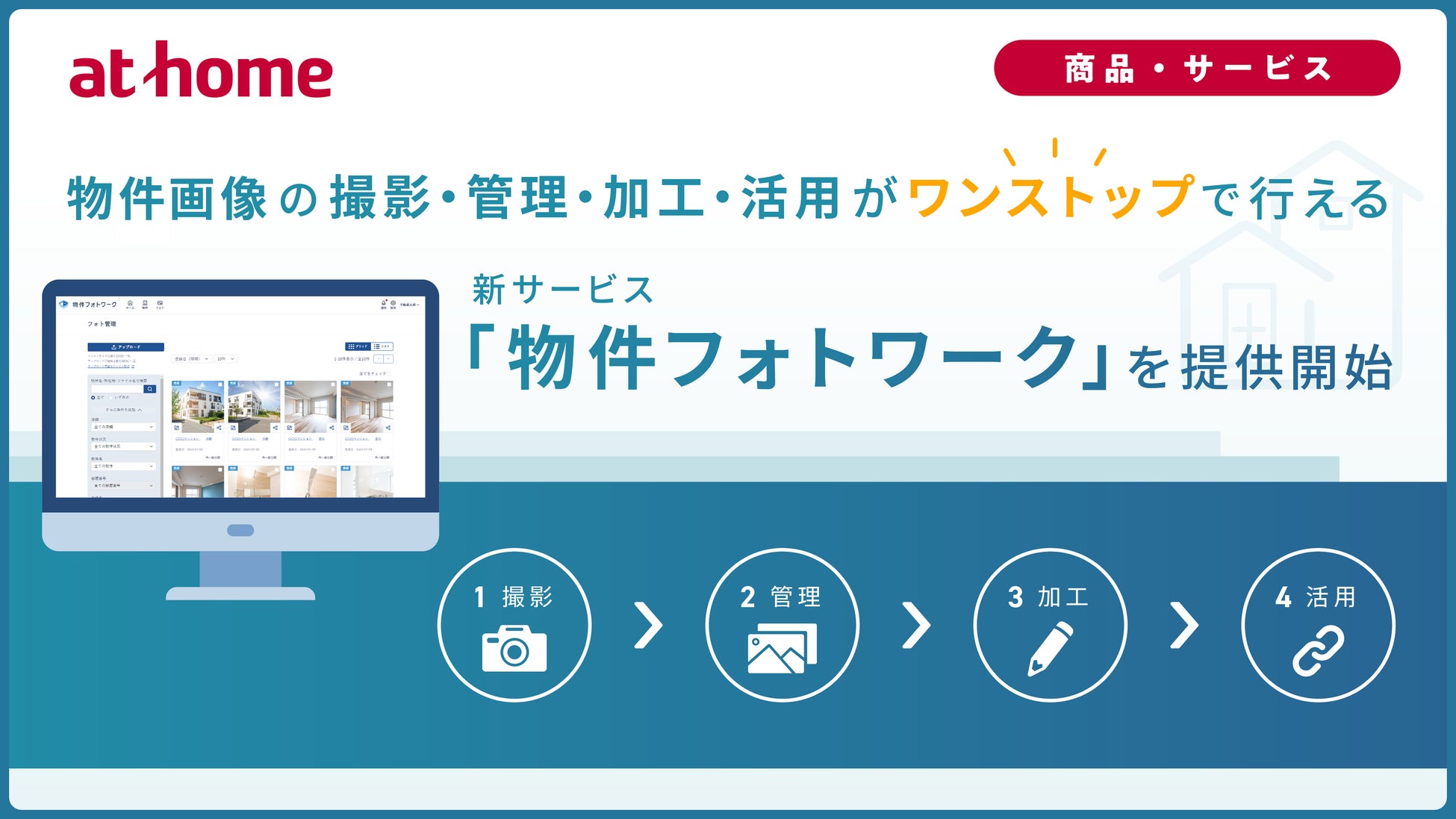不動産情報サービスのアットホーム株式会社(本社:東京都大田区 代表取締役社長:鶴森 康史 以下、アットホーム)は、2024年8月28日(水)(※1)より、物件画像の撮影・管理・加工・活用がワンストップで行える不動産会社向け新サービス「物件フォトワーク」の提供を開始いたします。本サービスにより、不動産会社は膨大な物件画像のデータをクラウド上にストックし、スムーズに活用できるようになり、物件画像の管理などにおける業務負荷の軽減につながります。