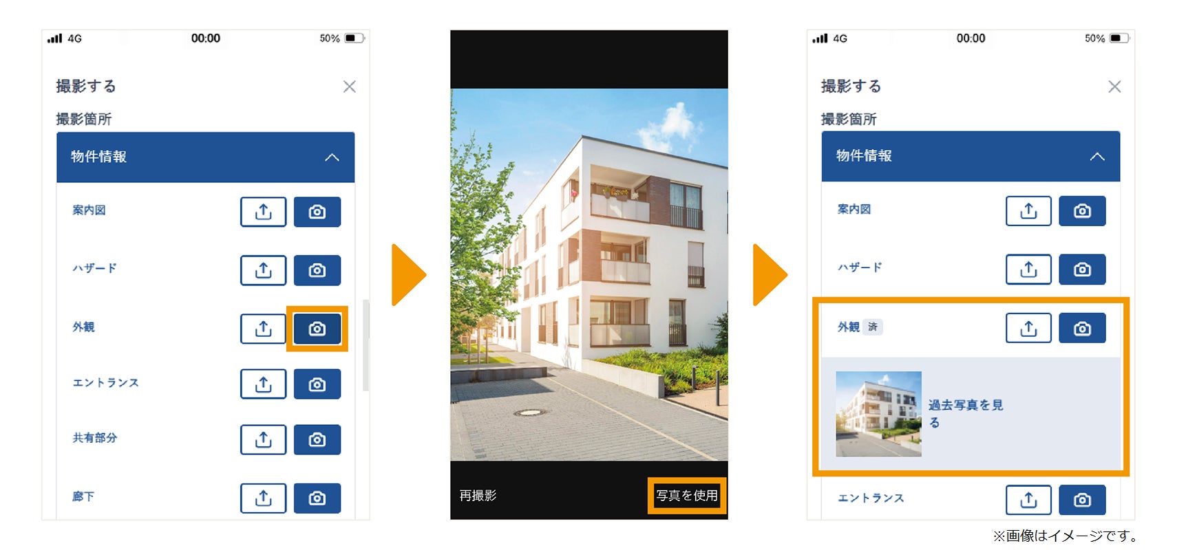 あらかじめ撮影箇所を選択しておくことができるため、物件画像を撮影する際に「エントランスの写真を撮影し忘れてしまった」などの撮影場所の漏れを防止します。撮影したデータは自動でクラウド上に保存されるため、リアルタイムで共有できます。