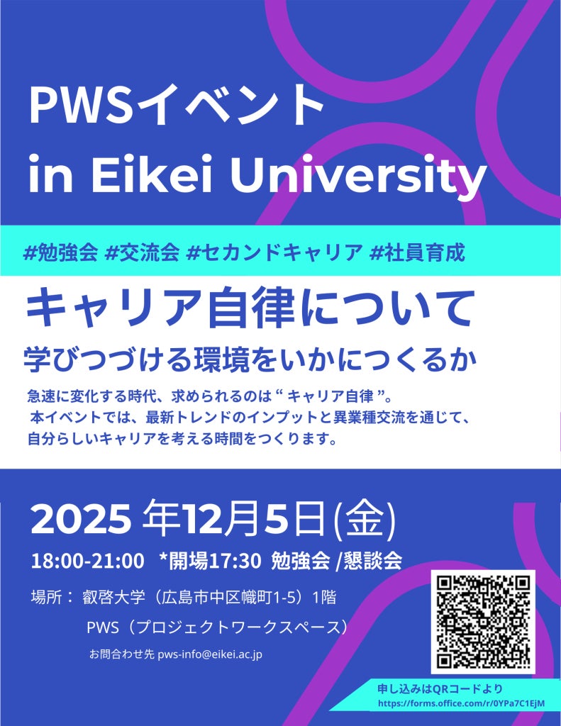 【参加者募集】12月5日(金) 【PWSイベント】キャリア自律について〜学び続ける環境をいかに作るか〜 - 【公式サイト】広島県公立大学法人 叡啓大学