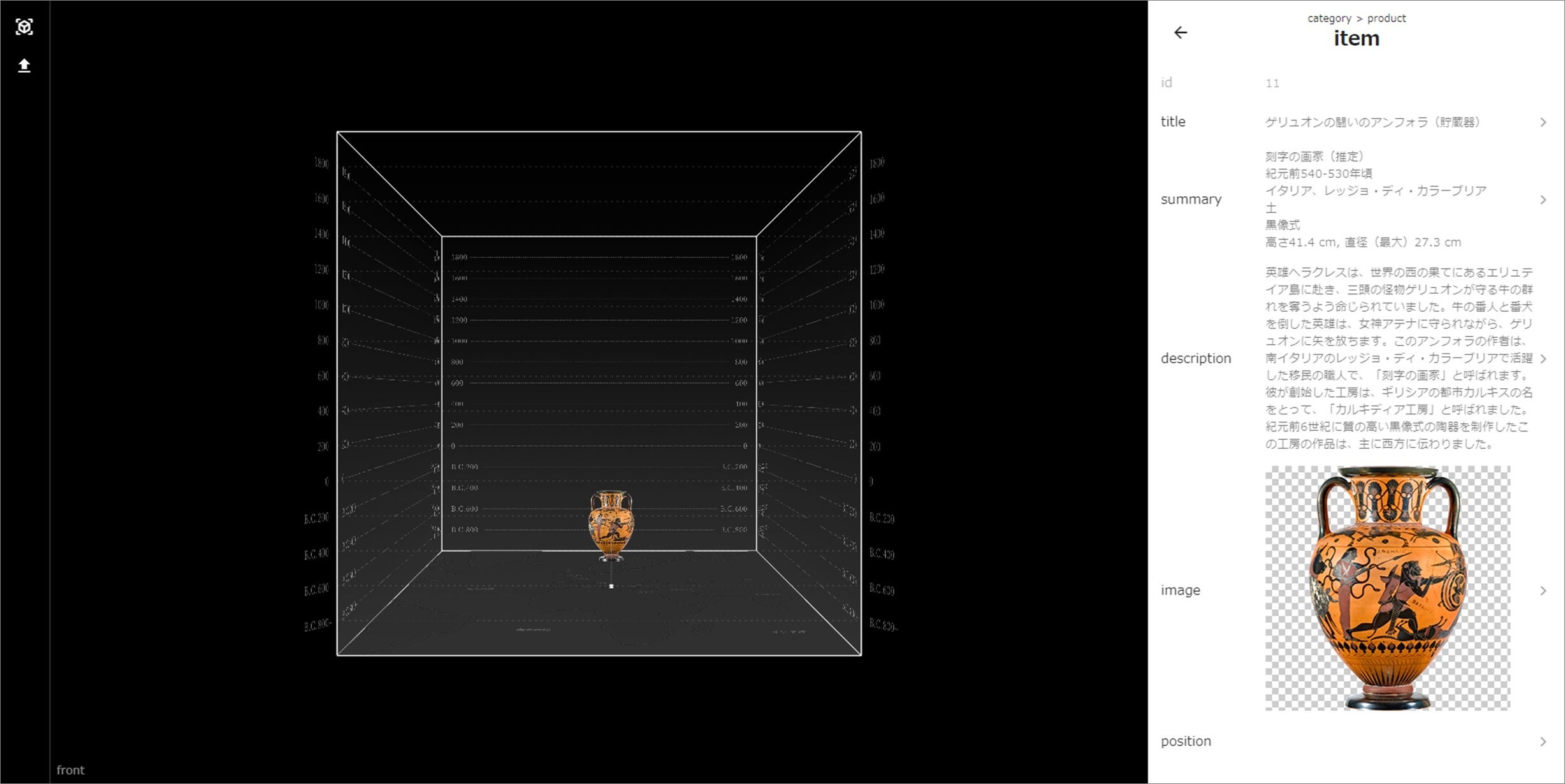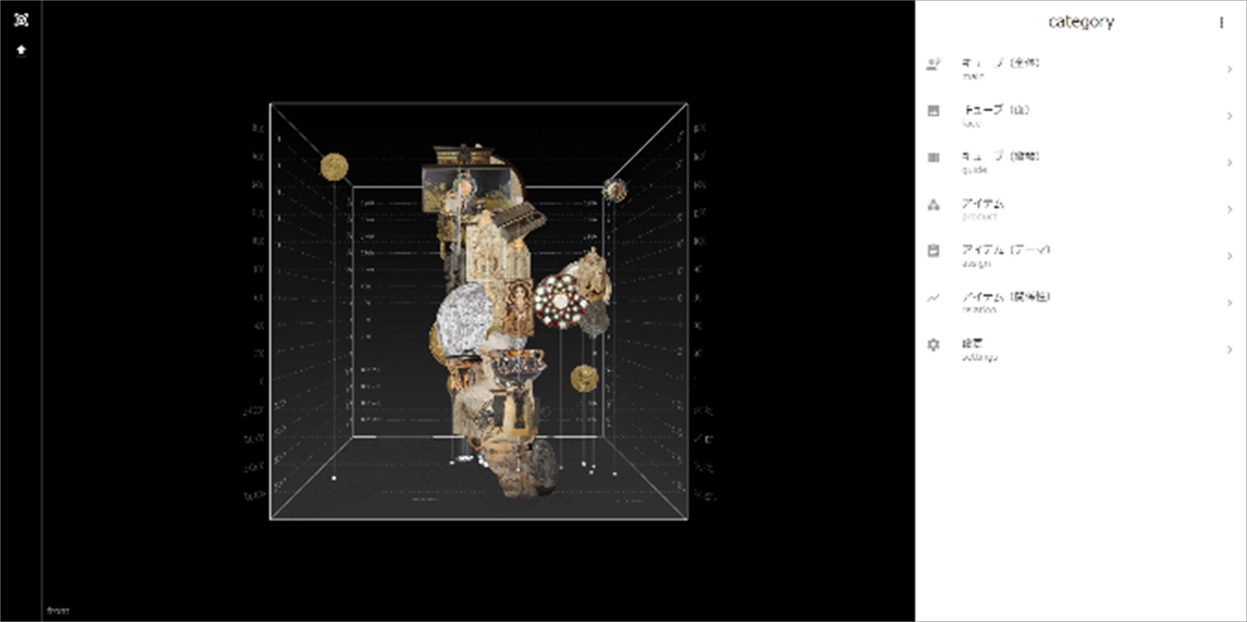 「みどころキューブ」のコンテンツに必要な各種画像やテキストの設定、3次元空間内での各作品等の配置、関連テーマとの連動の設定、作品同士の関係を表すキーワードの設定などをPCのブラウザーで行うことが可能で、より簡易な制作を実現します。また、アイテムの情報登録や位置調整をドラッグ&ドロップの操作で簡単に行うことができます。