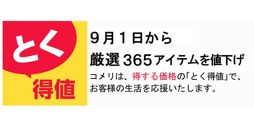 ホームセンターの「コメリパワー」や「コメリハード&グリーン」を通し地域のライフラインであり続けたいと願う株式会社コメリ(所在地:新潟県 新潟市、代表取締役社長:捧 雄一郎)は、今一番おすすめの商品を得する価格で提供する「とく得値」でお客様の暮らしを応援します。