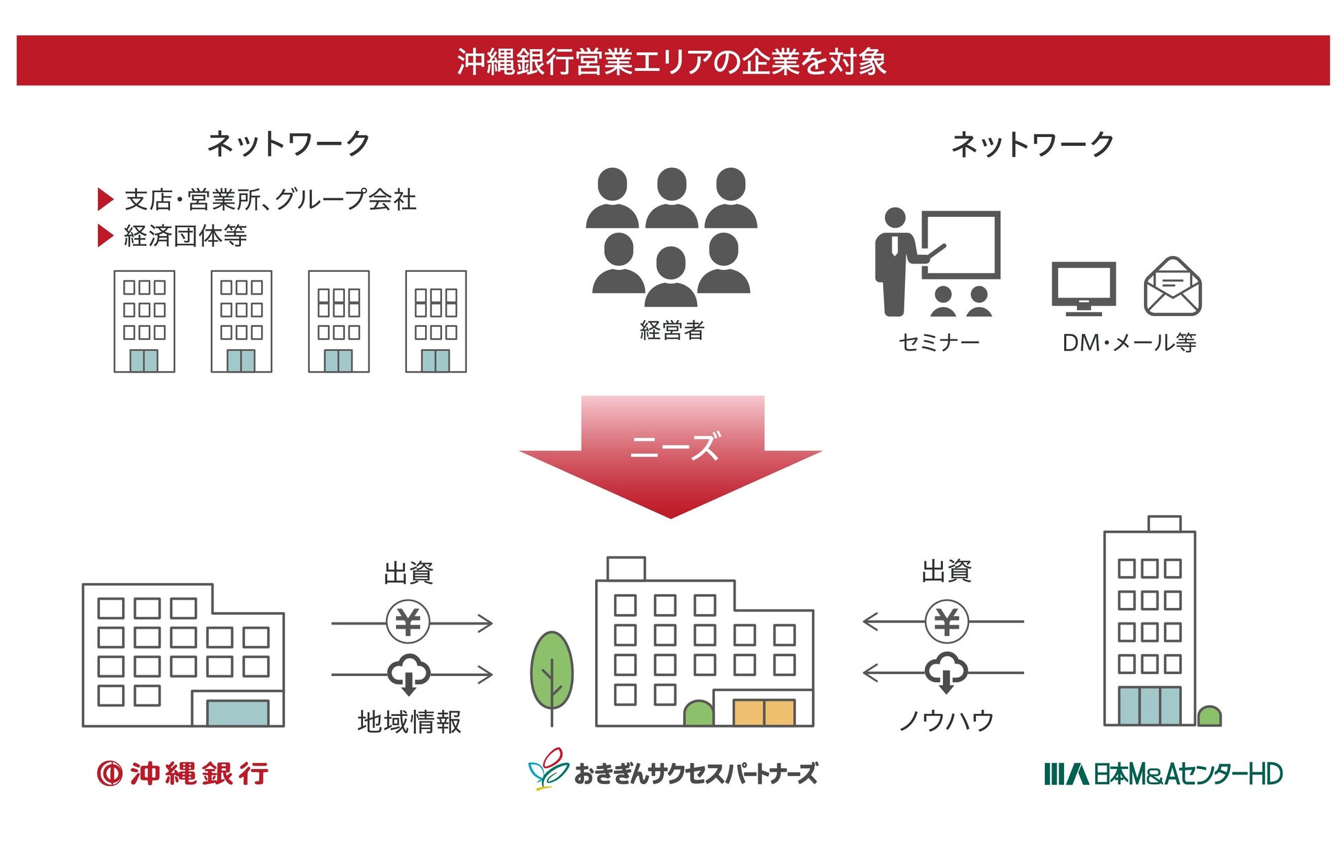 当社の事業承継・M&Aに関するノウハウと沖縄銀行の営業基盤・ネットワークを融合し、地域企業の事業承継問題の解決に貢献し地域経済の持続的成長を支援することを目的として、2025年7月1日に沖縄銀行との合弁会社を設立し、事業を開始いたします。