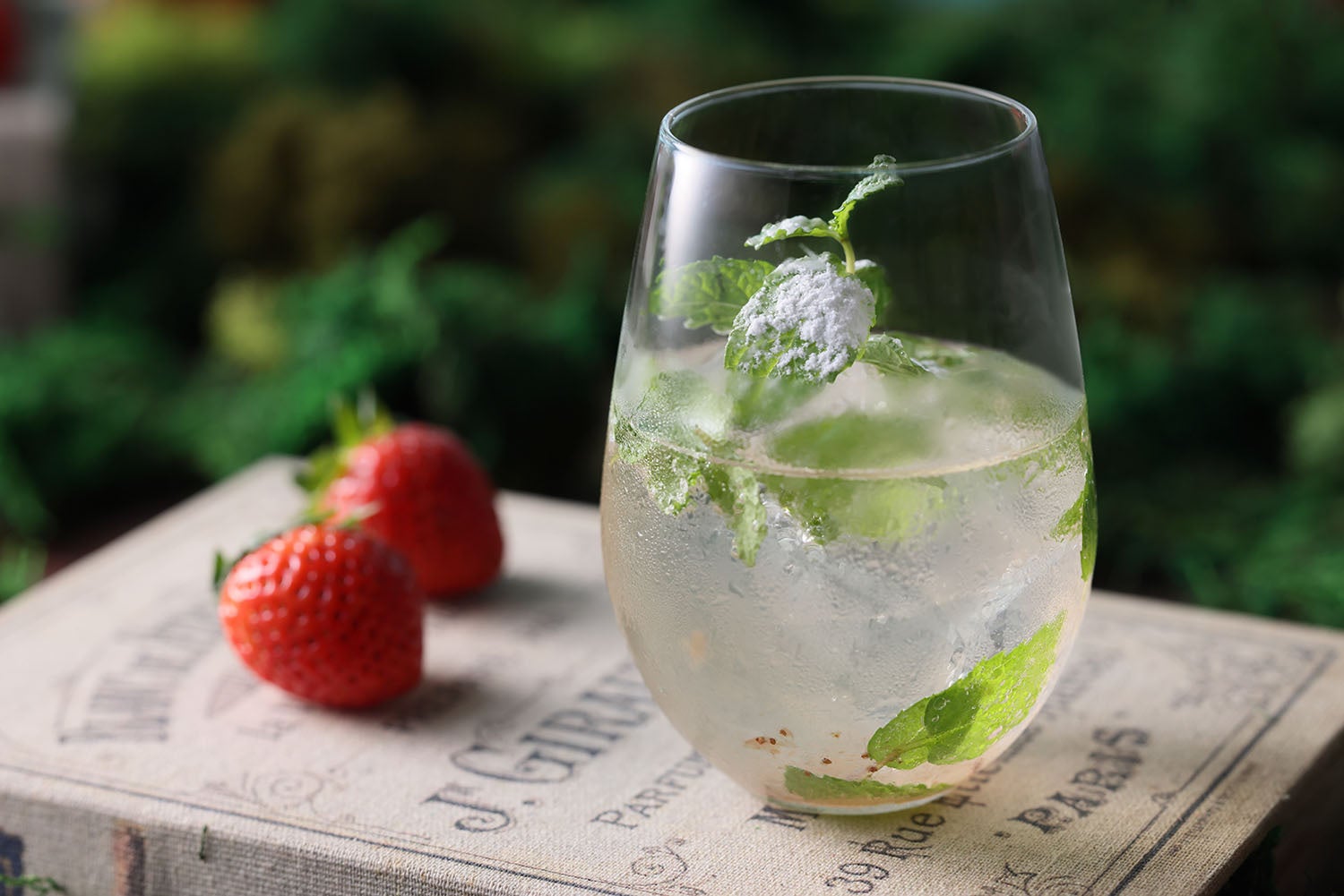 スタートは【ストロベリーモヒート】!ビュッフェカウンターにはいちご満載のスイーツがラインナップ♪