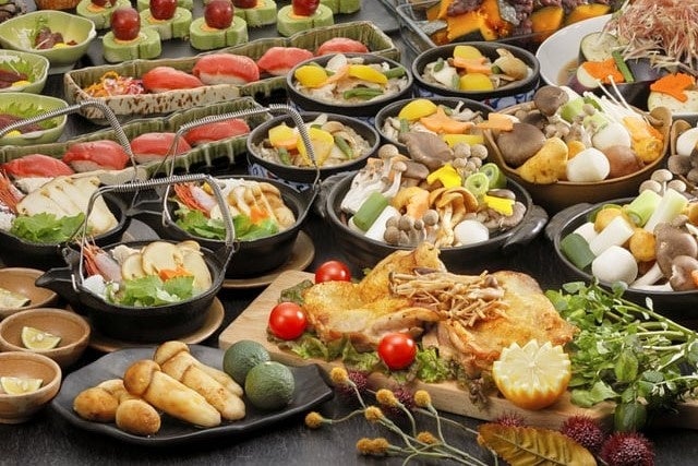 「秋のきのこ料理」をテーマに、ジャンボなめこの天ぷら、キノコのカルボナーラ、芋煮鍋など秋を彩るキノコ料理が並びます。他にも握り寿司や、会津名物の馬刺しなどを季節限定でご用意します。10月1日~18日、10月28日~11月30日は「松茸の土瓶蒸し」が登場、10月19日~27日は「松茸の和牛すき焼き」をご賞味ください。