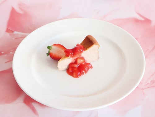 苺(まりひめ)の酸味がアクセントのチーズケーキに、苺(まりひめ)ソースを絡めてお召し上がりください。