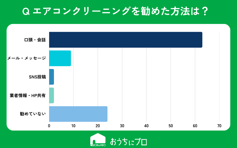 エアコンクリーニングを勧める際に使用した方法は「口頭・会話」。
