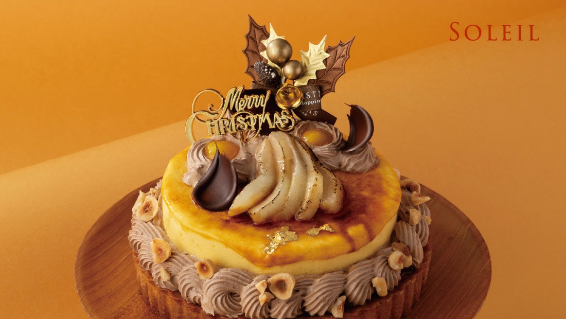 「ラ・モーラ」パティシエが作る2025年クリスマスケーキは、クリスマスリースをイメージしたデコレーションチーズケーキや人気のキャラメルポワールをタルトにアレンジしたソレイユなど5種類