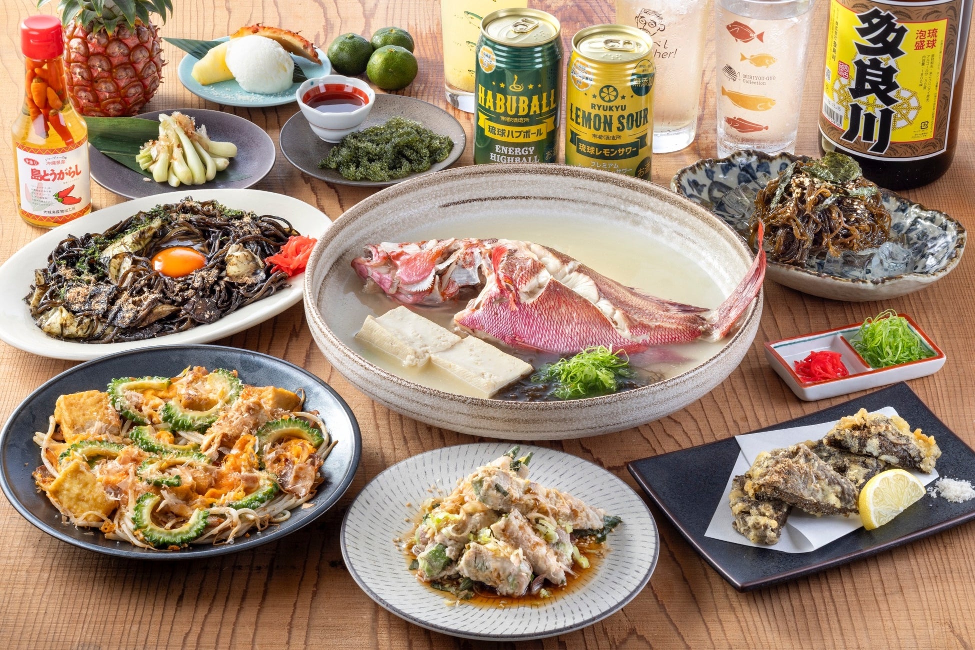 風味豊かな宮古島の泡盛「多良川」(630円)や、ハブエキスとハーブ入りの琉球ハブボール(580円)、沖縄産シークワーサーを使った琉球レモンサワー(580円)、さんぴん茶ハイ(520円)など食材の力強さと相性の良いドリンクを揃えました。
