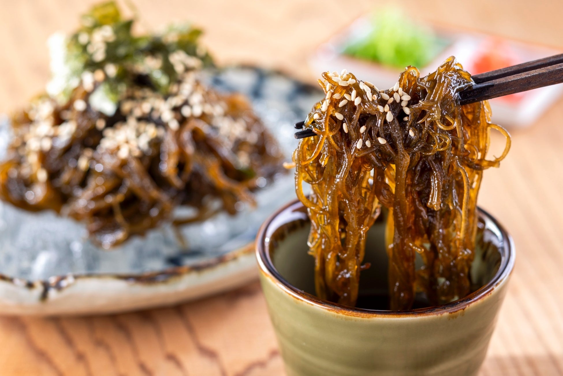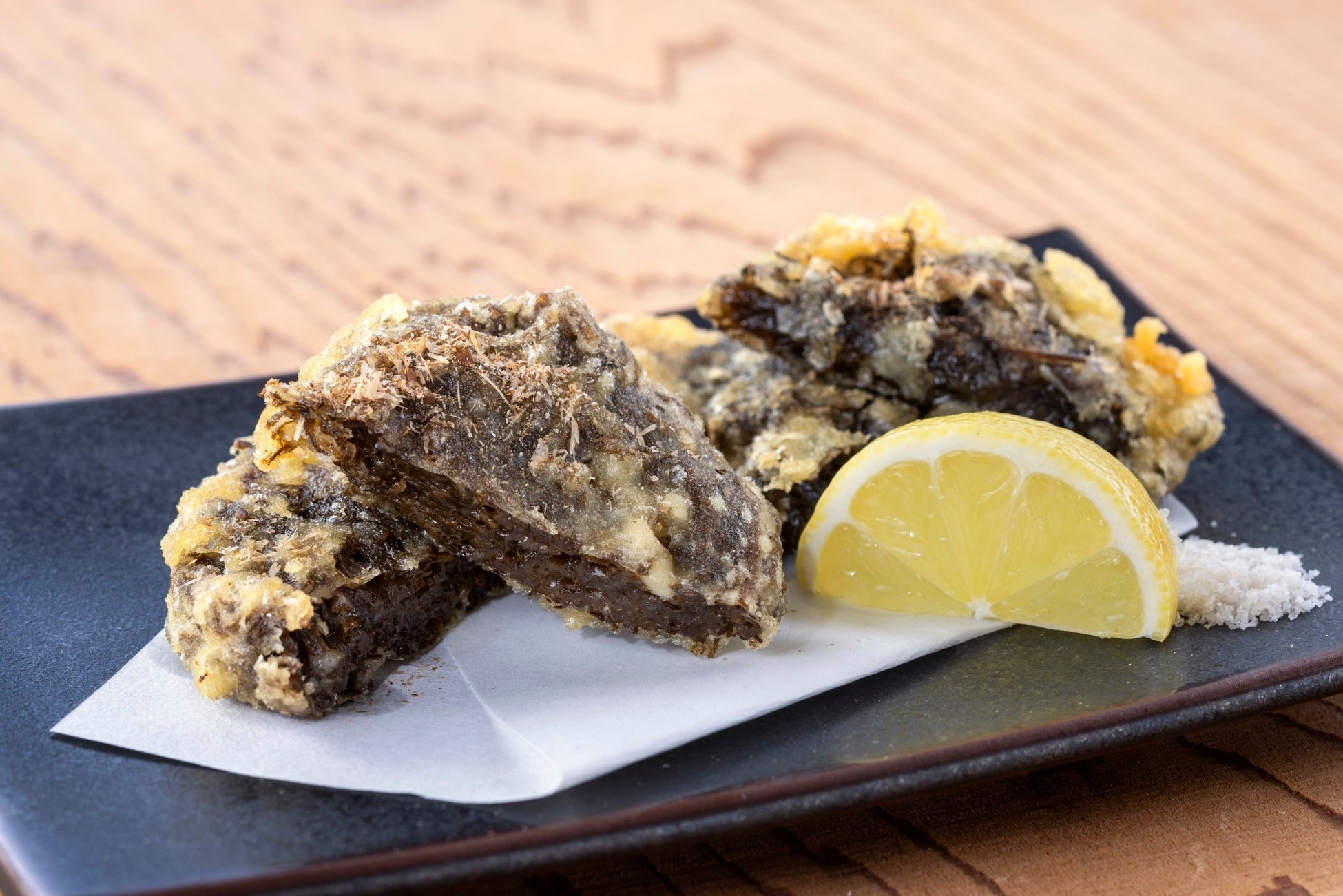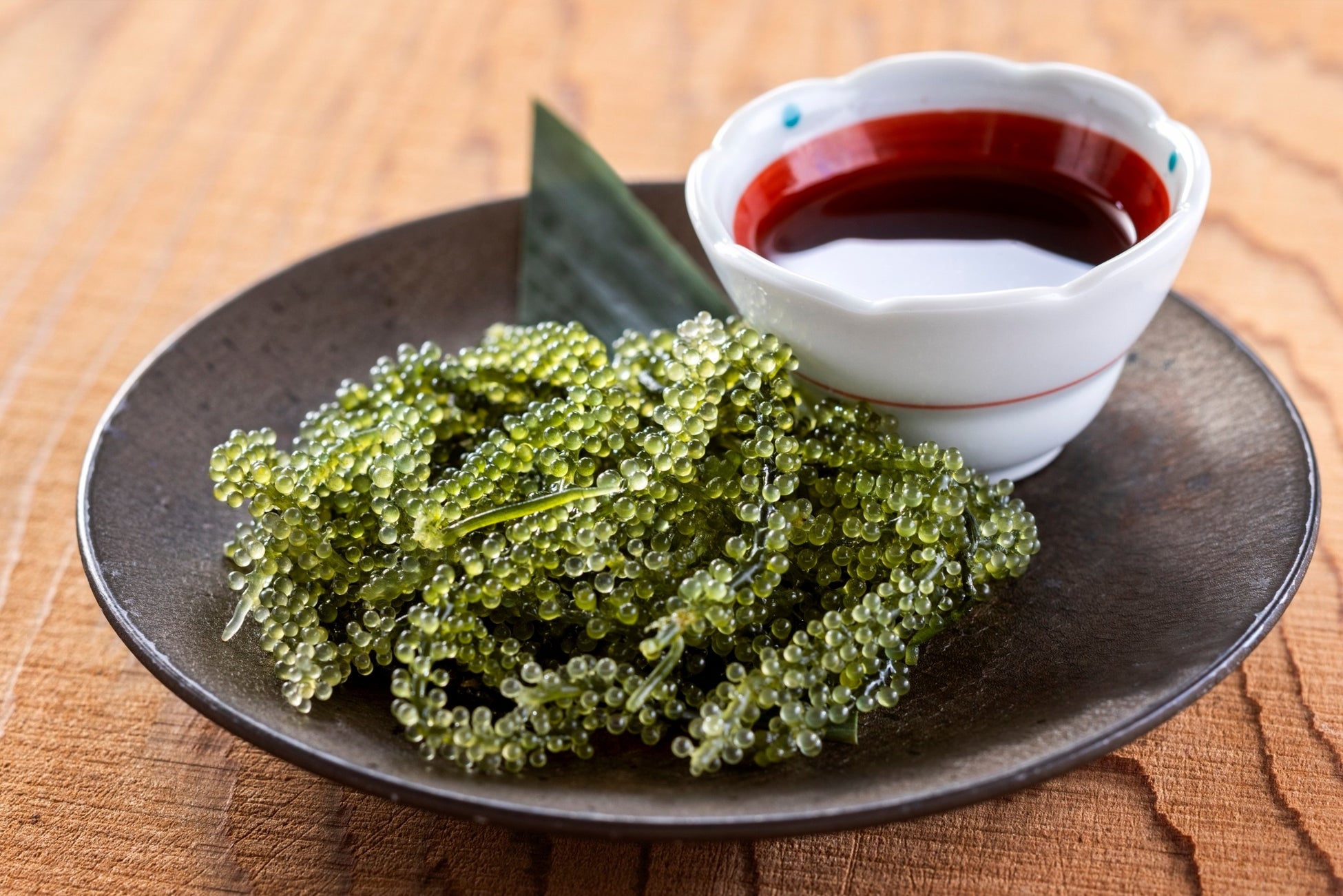 よんぱちのお通しといえば、海藻や魚介の層が美しい「海宝瓶」が定番ですが、期間中は沖縄産「ざるもずく」になります。ざくざくと歯触りがよく風味のよい沖縄産のもずくを特製の飲めるポン酢でお楽しみいただけます。
