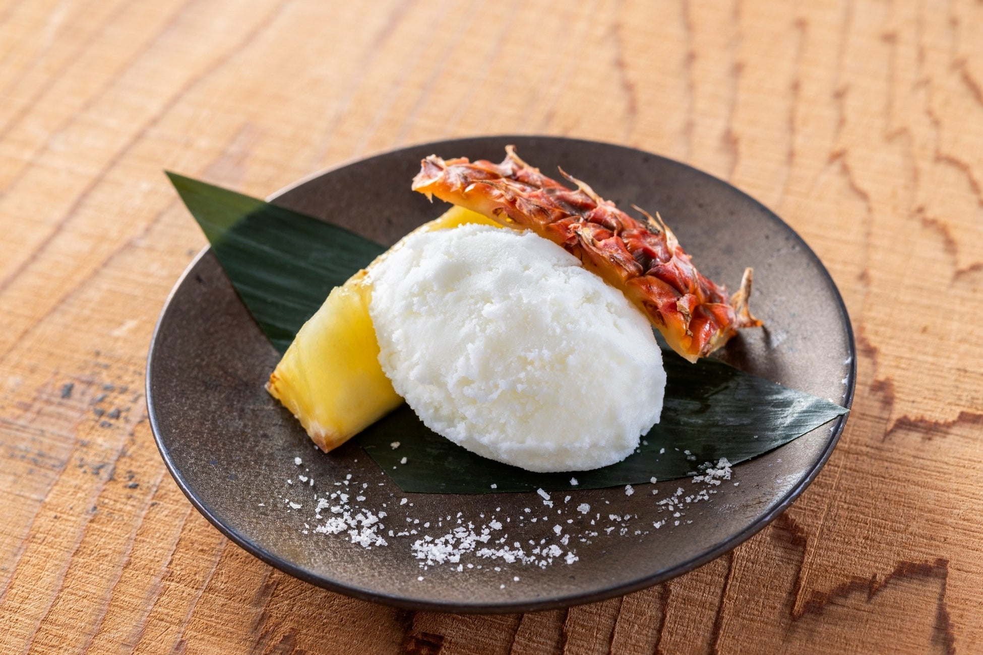 このほかにも沖縄の海の宝石「海ぶどう(490円)」や、カリっと揚がった衣にもっちりとした食感が楽しい「もずく天ぷら(550円)」、デザートには沖縄の塩「マース」を使った塩アイスと、その名のとおりほのかに桃のような優しい香りの沖縄産ピーチパインを添えた「塩アイスとピーチパイン(490円)」など、一品ずつ素材に向き合ったメニューを揃えています。
