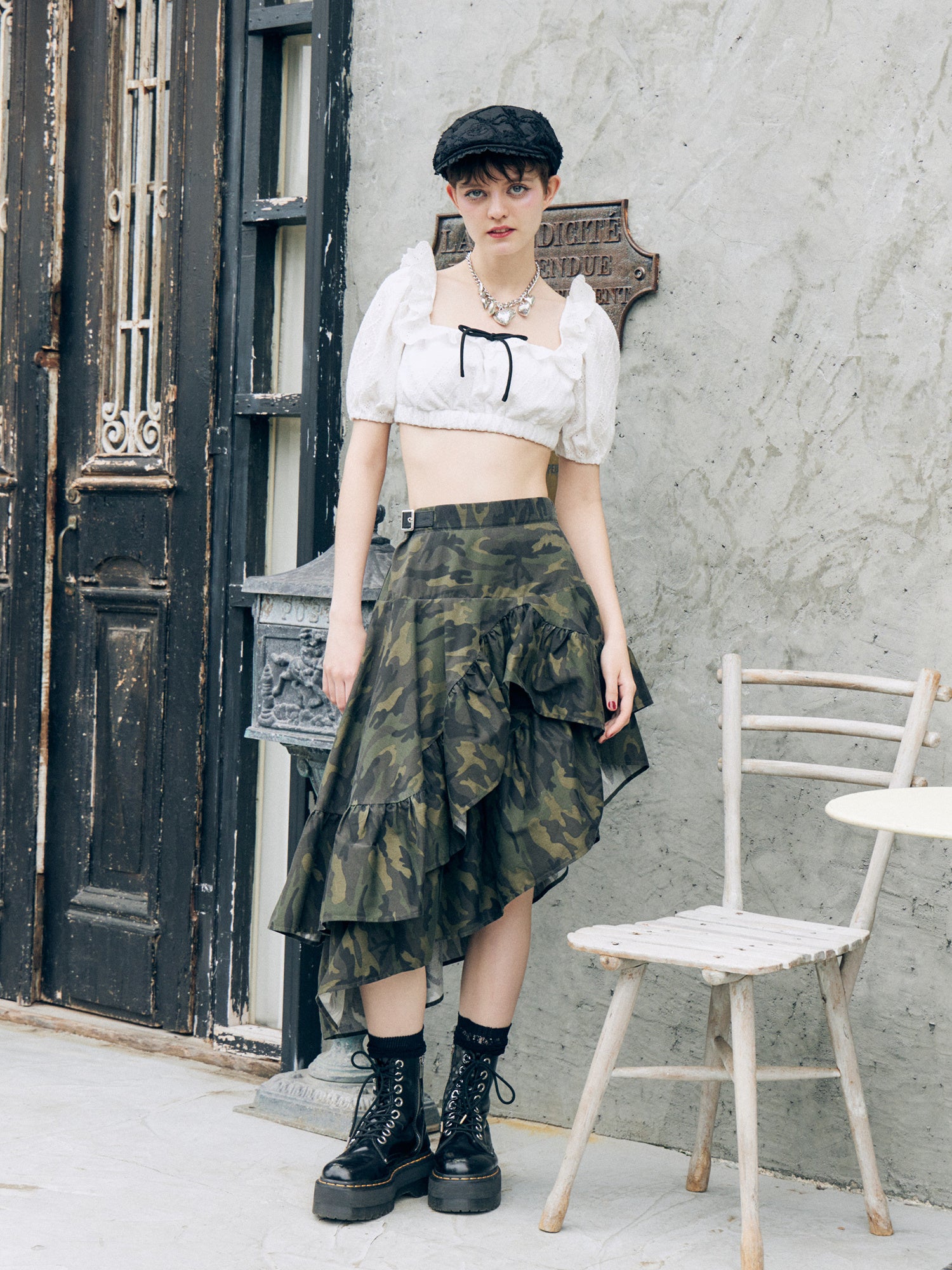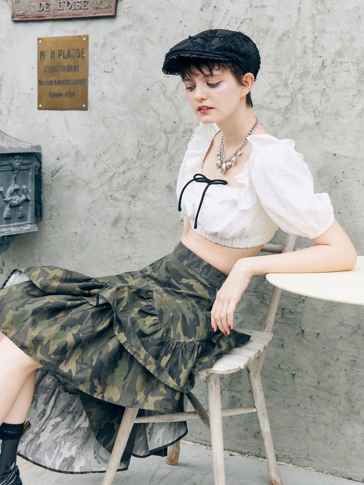 夏のコーディネートに映えるjouetieらしい柄と、そのまま街にも飛び出せるファッション性の高さが魅力です。ビーチシーンはもちろん、デニムやスカートと合わせたタウンスタイリングにも取り入れやすく、シーンを問わず活躍します。