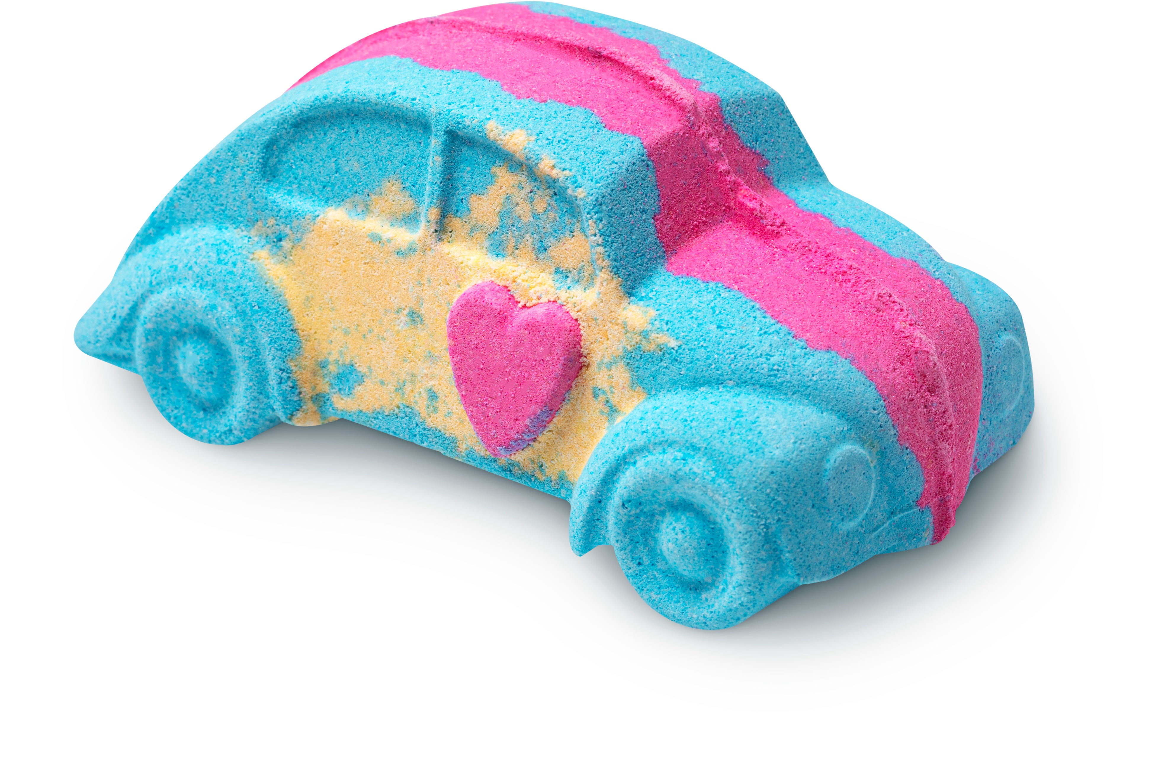 レモンやオレンジの晴れやかな香りを絶妙にブレンドし、フレッシュなローズでまとめているキュートな四輪車は、初恋のような甘く爽やかな香りのバスボム。ボンネットの下に収納された、プラスチックフリーのラメがサイケデリックな色合いに溶けていく様子とともに、バレンタインの胸高鳴るハプニングを予感させます。