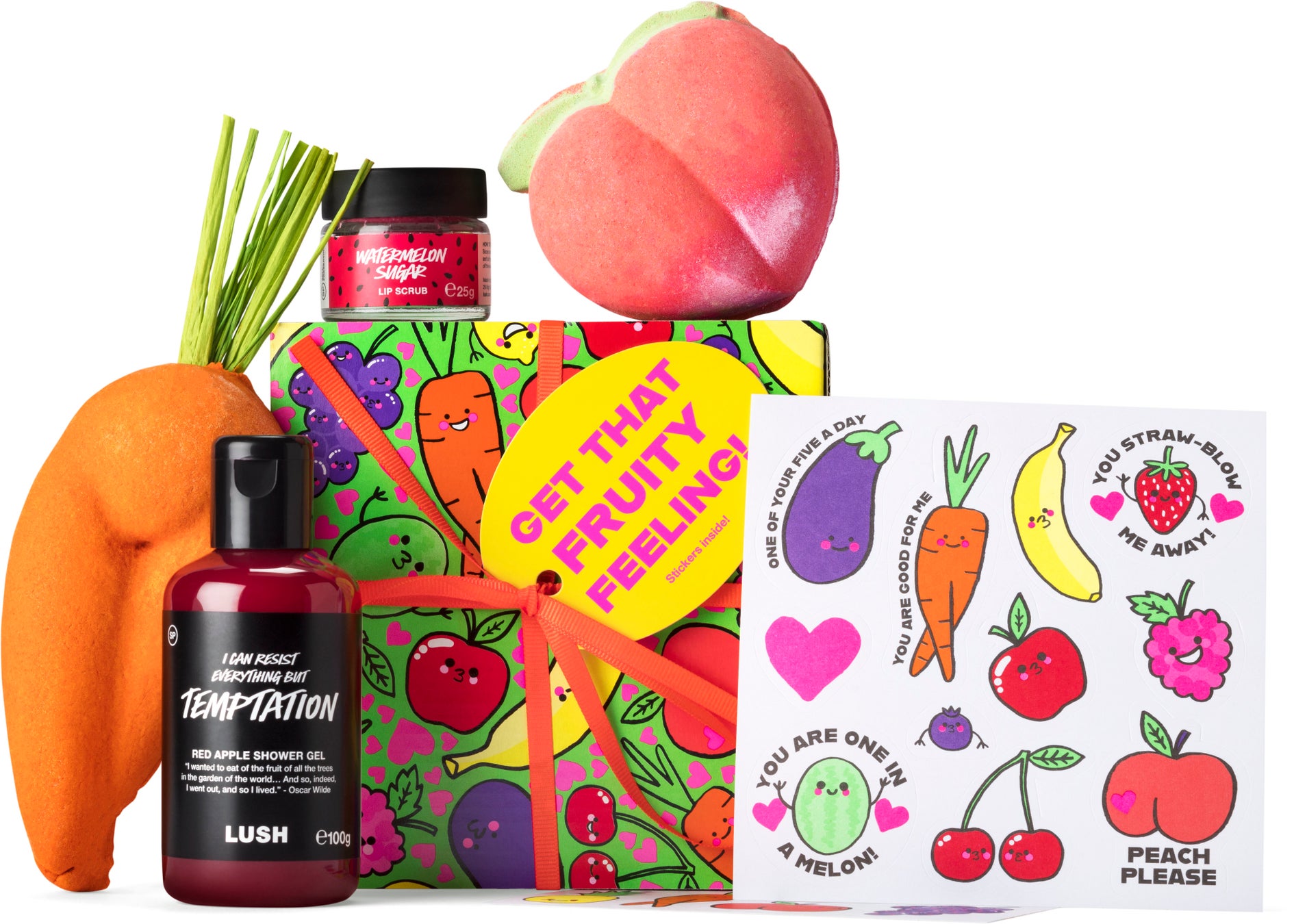 元気でかわいいフルーツと野菜のキャラクターが描かれたギフトボックスの中には、頭のてっぺんからつま先まで、フルーティー&スイートな香りで包みこむ4種類のアイテムが大集合。定番の人気商品も含むラインナップは、あなたの特別な人を飽きさせないでしょう。さらに、あなたの恋を応援するスペシャルステッカーが2枚ついています。