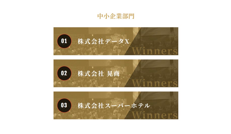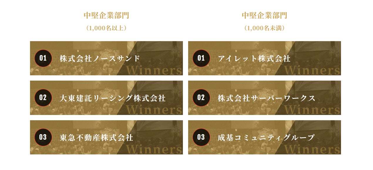 第1位は、株式会社ノースサンド様が受賞されました。昨年は中堅・成長ベンチャー企業部門で第3位にランクインしましたが、今年は見事1位を獲得されました。