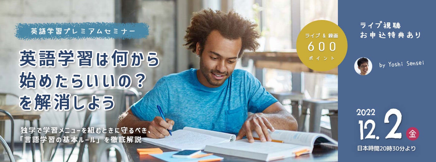 特設ページ:https://cafetalk.com/seminars/promo/?c=yoshi-english-dec-2022&lang=ja