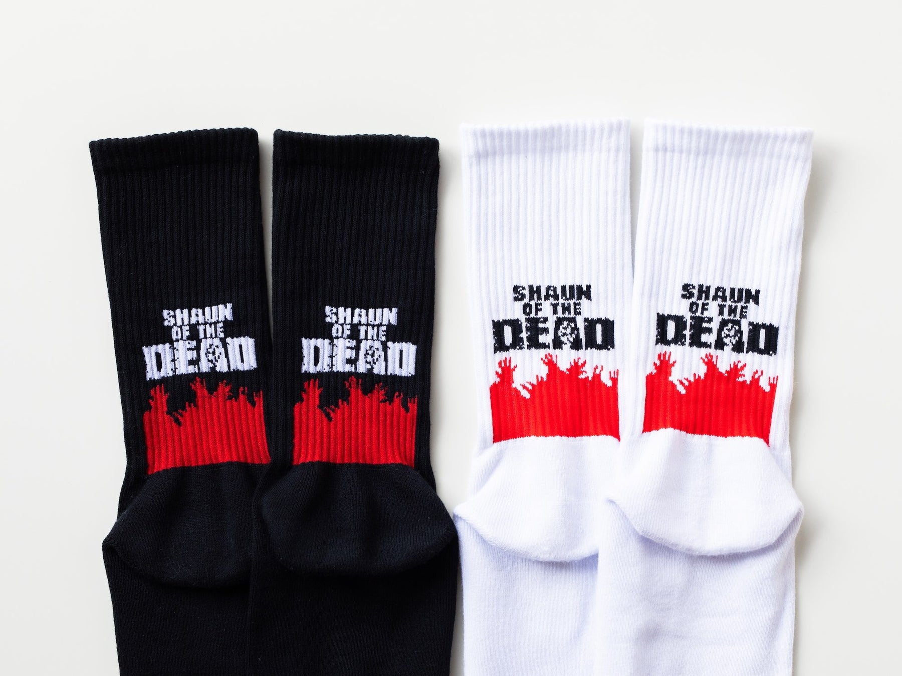 これからの季節にぴったりの厚手の生地に『ショーン・オブ・ザ・デッド』のロゴとゾンビ集団の手をデザイン。コーディネートに合わせて選べるホワイト、ブラックの2足セットです。