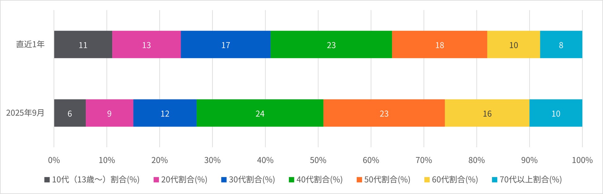 年代別では、2025年9月は通年と比べて40〜60代の割合が特に増加し、30代以下の割合は減少しています。男女比でも男性が5%アップしており、こうした背景から新CMは特に40代以降の男性層が関心を寄せたと言えます。 近年、ポッキーは「ポッキー占い」の再燃などで若年層や女性層の話題を集めていました。しかし過去を辿ると、歴代のCMイメージキャラクターは歌手・松田聖子さんの時代以降、アイドル好きの男性ファン層から注目され、ランキングページが作られるなどの側面も持っています。今回の新CMは、こうした(男性ファンが注目するという)歴史的背景に立ち返る形で、40代以降の男性層の関心を集めたと言えるでしょう。