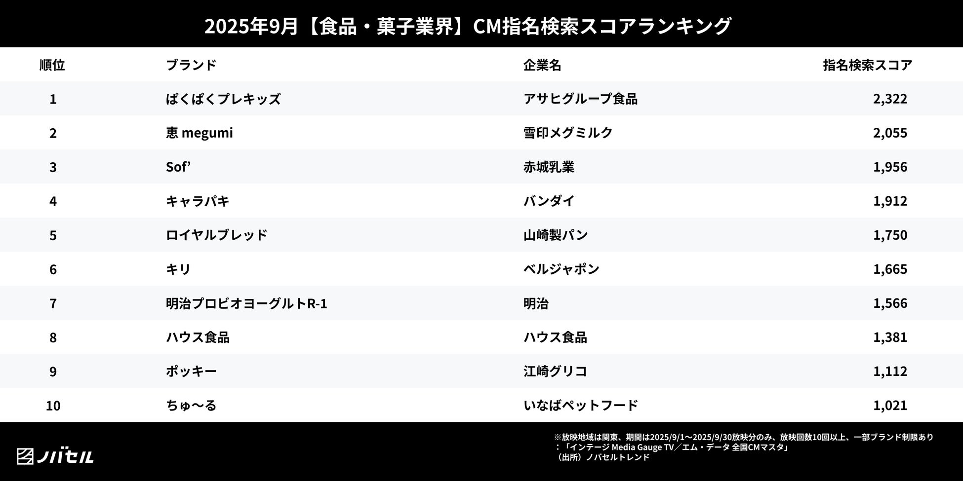 ~ノバセル発表、2025年9月 視聴者が検索したテレビCMランキング【食品・菓子業界編】~