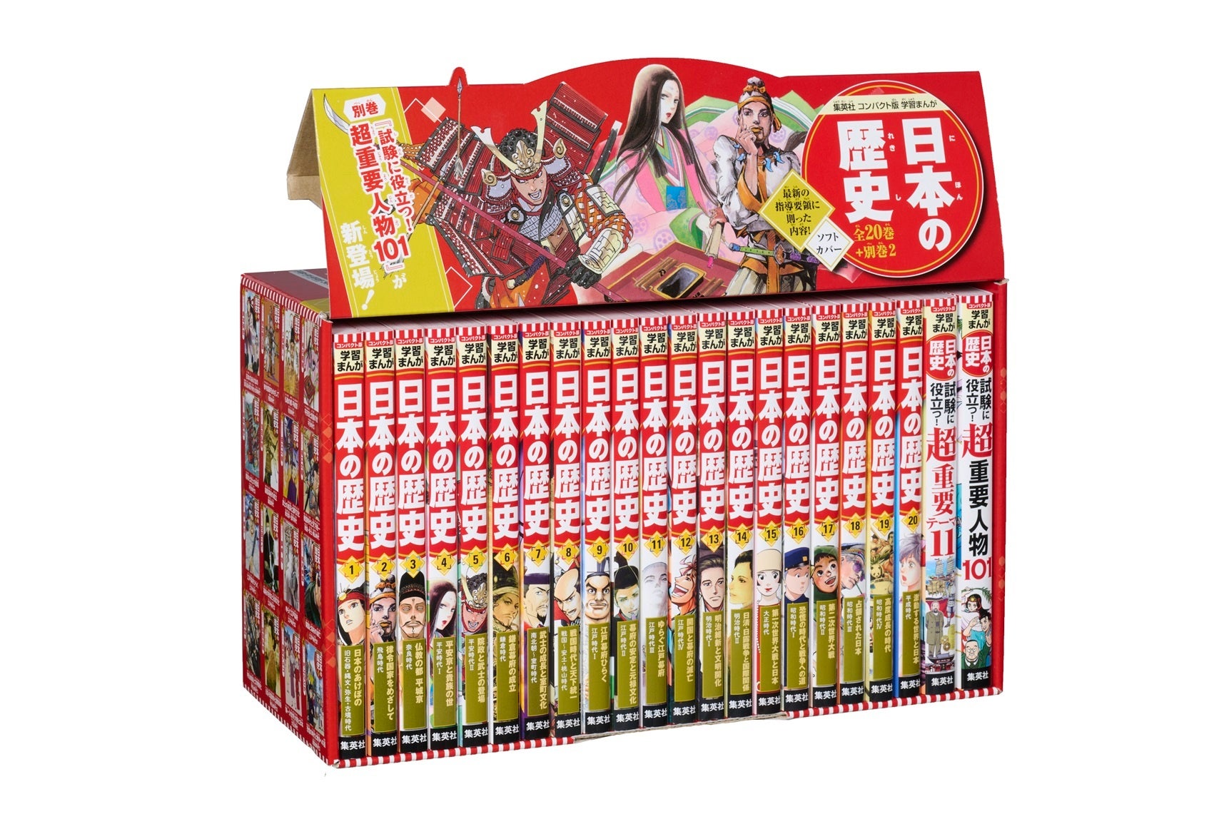 株式会社集英社は、「コンパクト版 学習まんが 日本の歴史」シリーズの新セットを、2023年11月15日(水)に発売いたしました。これまで本編全20巻に同シリーズ別巻(1)『試験に役立つ!超重要テーマ11』を組み合わせてお届けしていた21巻セットが、2023年10月5日刊行の同シリーズ別巻(2)『試験に役立つ! 超重要人物101』が加わり、22巻セットとしてパワーアップ。また、購入された方には、先着順で4つの特典アイテムもおつけします。歴史をより様々な角度から紐解き、理解を深められる新全巻セットの登場に、ぜひご注目ください。