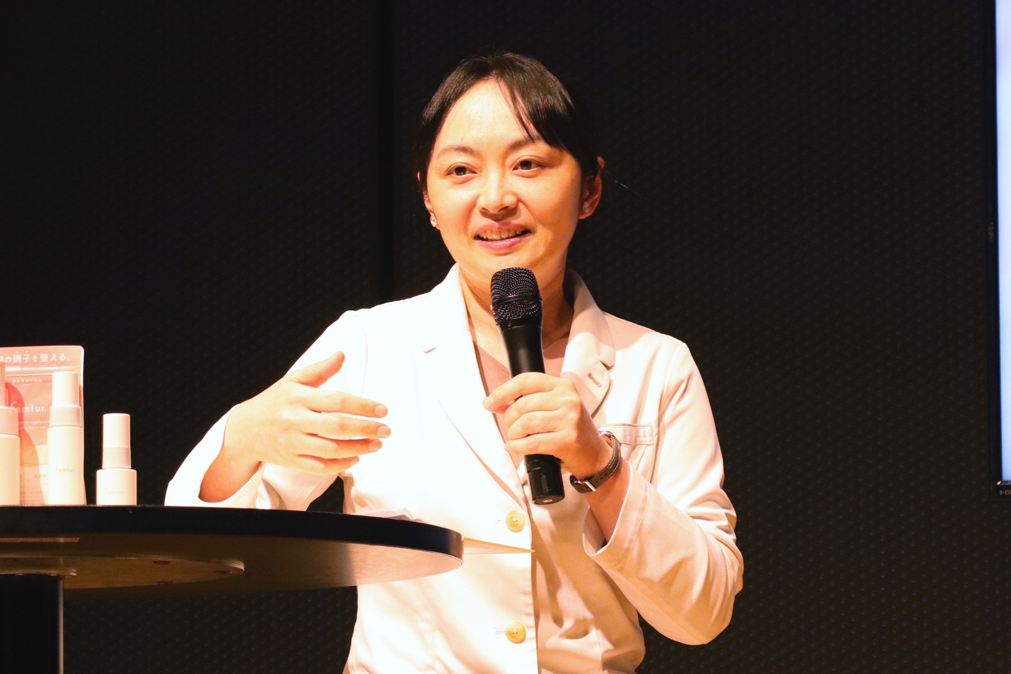 「更年期のデリケートゾーンの乾燥ケア」について大島医師は、乾燥はエストロゲンの低下によるもので、50代頃から本格的に乾燥に悩む女性が増えてくると説明。ホットフラッシュのようなエストロゲンの増減による症状は3年ほどで治まってくるのに対し、エストロゲンの低下や加齢にともなう乾燥などの症状はどんどん進行してしまうため、対策を講じる必要があると話しました。しかし、「デリケートゾーンは触ってはいけないもの」と思っていたり、具体的にどのようなケアが正しいのか分からないという女性も少なくないため、改めてこのような場を通じて情報をインプットすることも重要だとコメントしました。