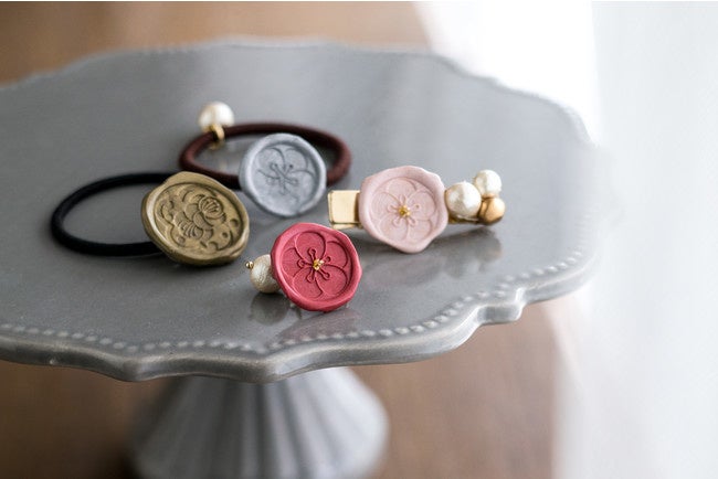 可愛らしい花個紋のモチーフ入りの手づくりアクセサリーだって作れます。
