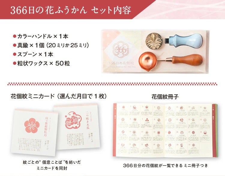 ハンドメイド雑貨が好きなだけ作れる!累計40,000本突破の「366日の花ずかん」シリーズから、誕生日の花個紋でつくるシーリングスタンプ「366日の花ふうかん」がリニューアルして新登場。