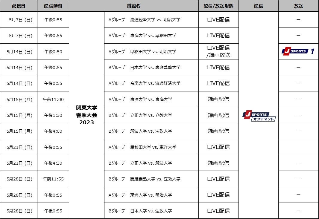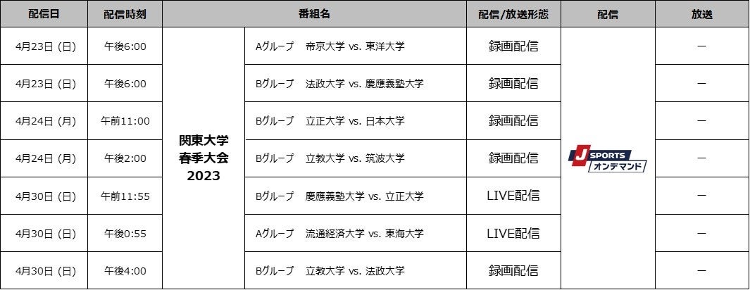 第12回関東大学春季交流大会 J SPORTSオンデマンドでA・Bグループ全試合を独占配信!