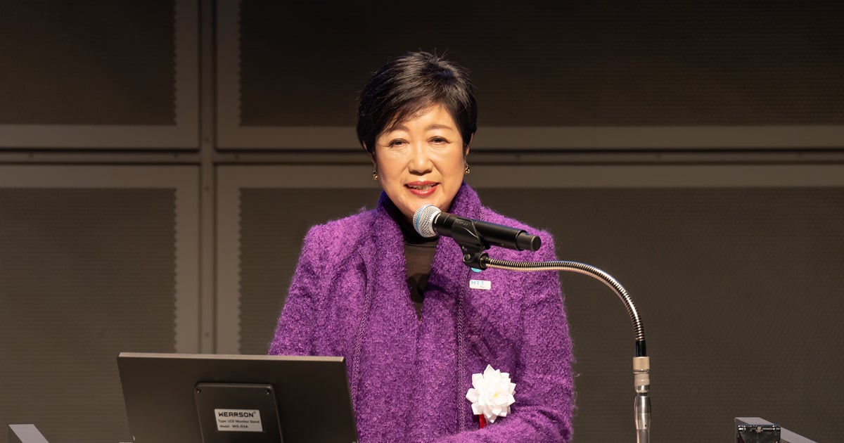 本イベントでは、運営事務局による事業概要説明と第7期受講生の代表者5名によるプログラムの成果報告を行った後、APT Women第6期受講生である株式会社カエカ代表取締役の千葉佳織氏に講演いただいたほか、主催者である東京都知事 小池百合子氏から新たな門出を祝うエールをいただきました。