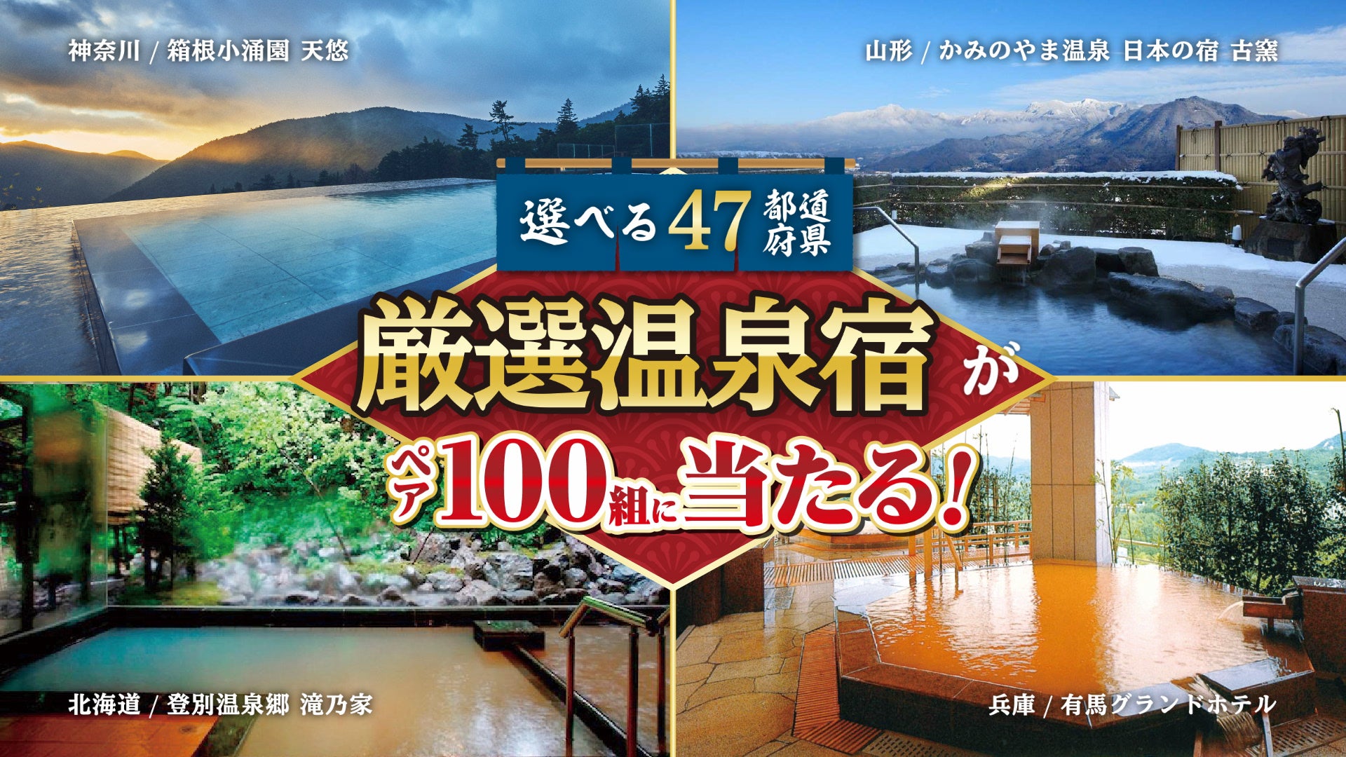 ∟抽選でペア100組に47都道府県から選べる「厳選温泉宿」へご招待