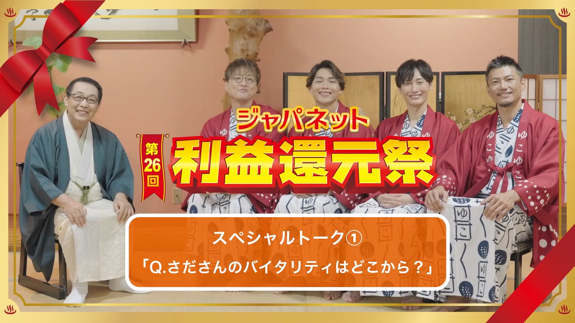1年間の感謝をお届けする利益還元祭にちなみ、インタビューでは「感謝を伝えたい人」をお話いただきました。さださんは『お客様』と語り、「コンサートに来てくださっている方々の拍手のおかげで生きている」として長い年月を一緒に時を過ごしてきたことへの深い感謝をお話されました。純烈さんからは、2025年3月末でグループを卒業される岩永さんから「支えてくれたファン、スタッフ、メンバー、家族全員に感謝。加入してみるとグループが想像を絶するほどすごいことをやっていて、ここまで支えてもらった。地元長崎で応援してくれた友人・親戚も含め、すべてに感謝の気持ちを全部出しながら、3月まで走りたい。」と想いを語られました。