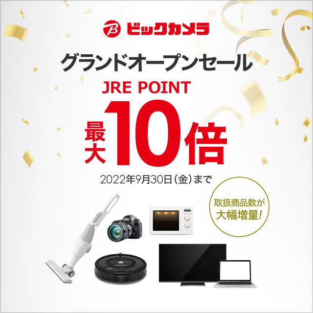 期間中に「ビックカメラ JRE MALL店」でお買い物いただくと、通常100円1ポイントのところ最大10ポイント貯まります。