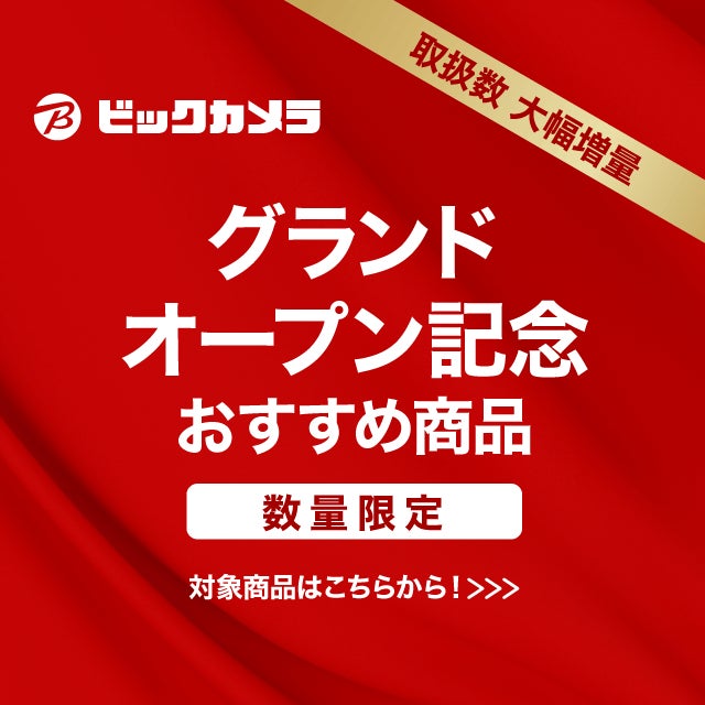 | 〇東日本旅客鉄道株式会社(本社:東京都渋谷区、代表取締役社長:深澤 祐二、以下「JR 東日本」)と株式会社ビックカメラ(本社:東京都豊島区、代表取締役社長:秋保 徹、以下「ビックカメラ」)は、JR 東日本が運営するECサイト「JRE MALL」でのお買い物を、お客さまにより便利に楽しんでいただけるよう取り組んでまいりました。「ビックカメラ JRE MALL店」は、取扱商品数を大幅に拡大し、家電、スポーツ用品、日用雑貨など幅広く豊富な品揃えで、本日9月2日(金)にグランドオープンいたしました。 〇グランドオープンに伴い、お得なキャンペーンを実施します。 〇今後もJR東日本とビックカメラは、お客さまの生活をより豊かにするサービスの開発で連携し、お買い物体験の価値向上に引き続き取り組んでまいります。 |