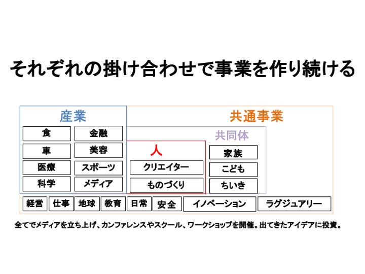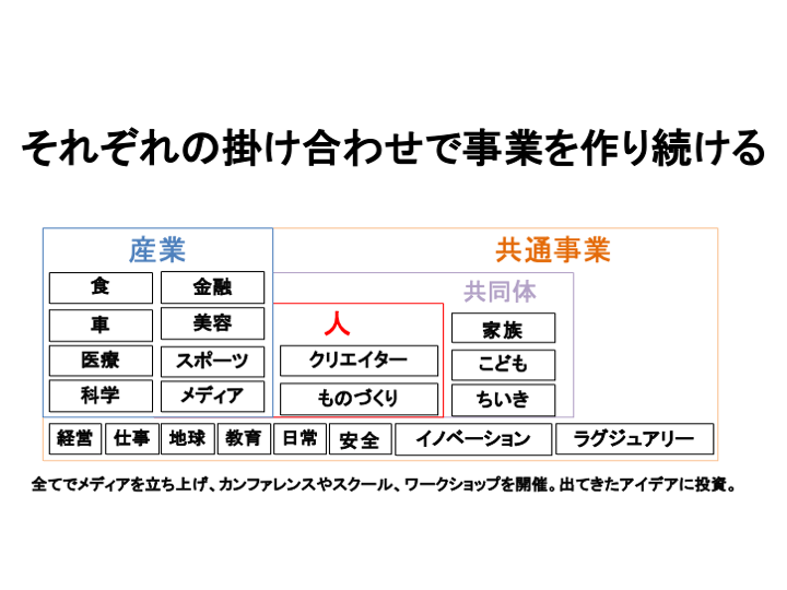 コミュニティ活動を大切にしていることもあり、未来プロジェクト同士の連携も促せるよう、統合支援する会社(https://prtimes.jp/main/html/rd/p/000000366.000018590.html)の設立も準備中です。どんな領域で立ち上げを準備中なのか、下記をご覧いただけたら幸いです。