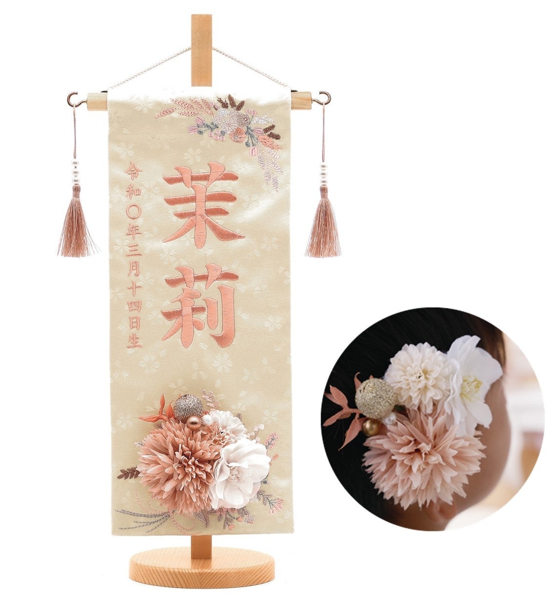 ■商品名:刺繍名入れ名前旗 髪飾り (飾り台付)