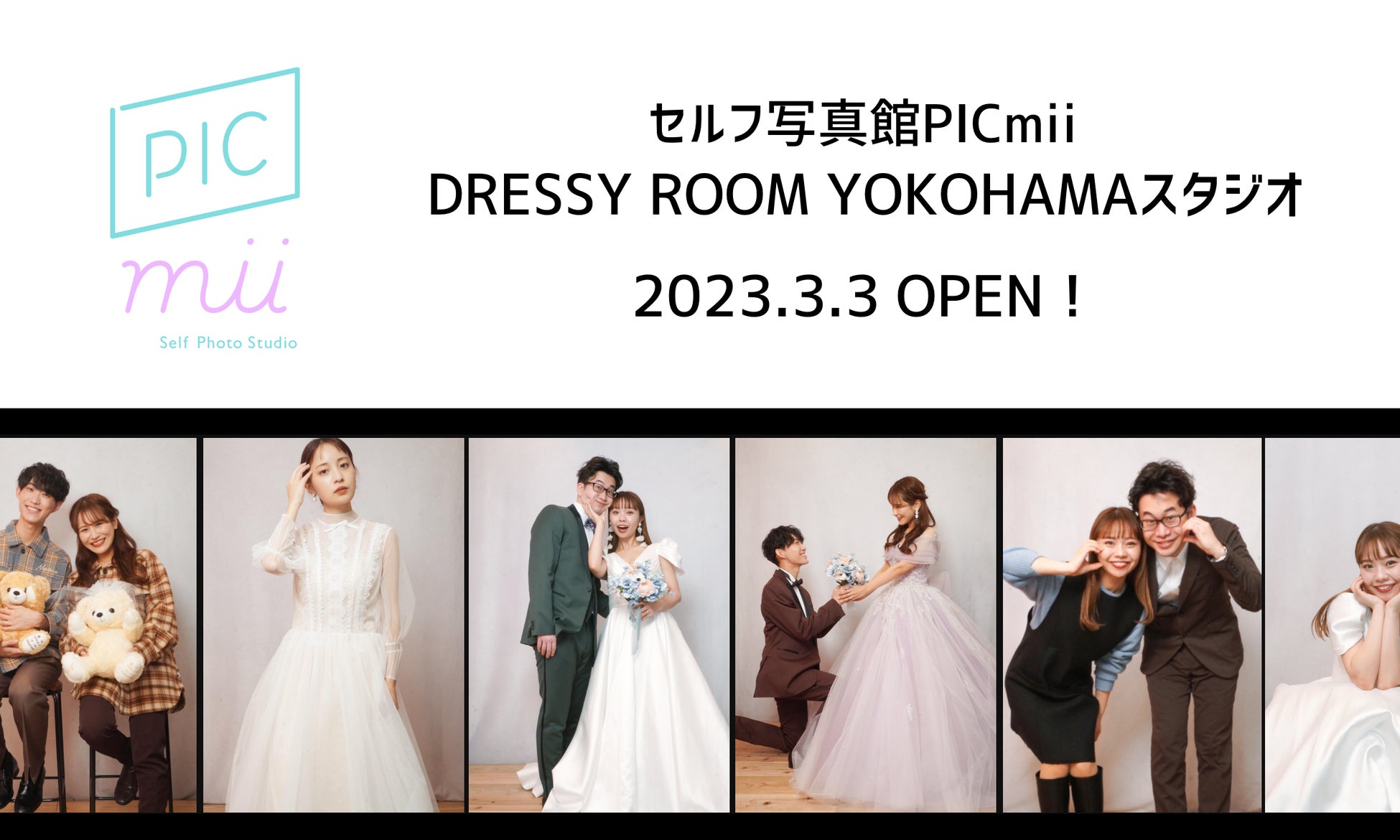 PICmiiは、カメラ専門店「カメラのキタムラ」および写真スタジオ「スタジオマリオ」で培ったノウハウを活かし、撮影画質の仕上がりにこだわったセルフ写真館で、個室での自由な撮影をお楽しみいただけます。新設されるDRESSY ROOM YOKOHAMAスタジオは、ドレス&アクセサリーショップ、フィッティングルームを併設し、気軽にウェディングフォトを撮影できる特別なスタジオです。PLACOLE&DRESSYオリジナルデザインのドレスや、人気ブランドとのコラボドレスが着用でき、ウェディングドレスをもっと身近に、もっと気軽に、体感できる空間となっております。本日よりDRESSY ONLINEで、ご予約受付を開始いたします。