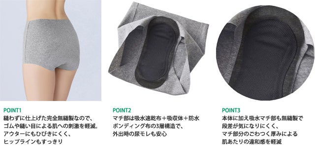 女性の3人に1人が経験。出産や加齢による尿漏れに悩む方へ アウターにひびきにくく、いつも通りのおしゃれも楽しめる 完全無縫製吸水ショーツ発売