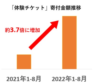 ※2 さとふる「体験チケット」カテゴリにおける、2021年1~8月と2022年1~8月の寄付金額の比較。
