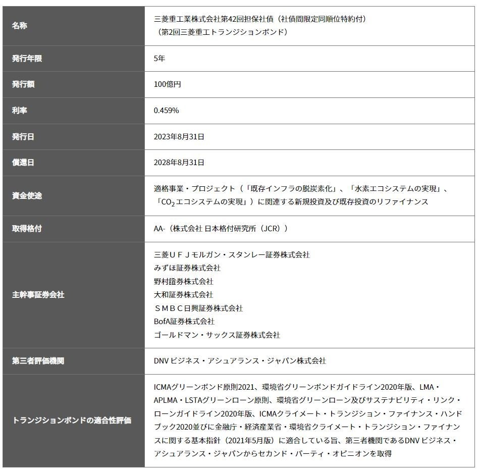 三菱重工業は、7月28日にプレスリリースで発表したトランジションボンド(以下、本社債)の発行条件を以下の通り決定しましたので、お知らせします。