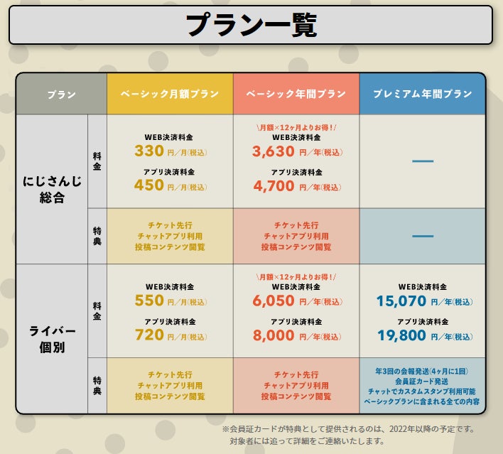 また、ライバー個別ファンクラブのプレミアム年間プランに入会していただいた会員様に発送している年3回発⾏の会報誌に関しては、11月号会報を2022年11月より発送開始いたします。