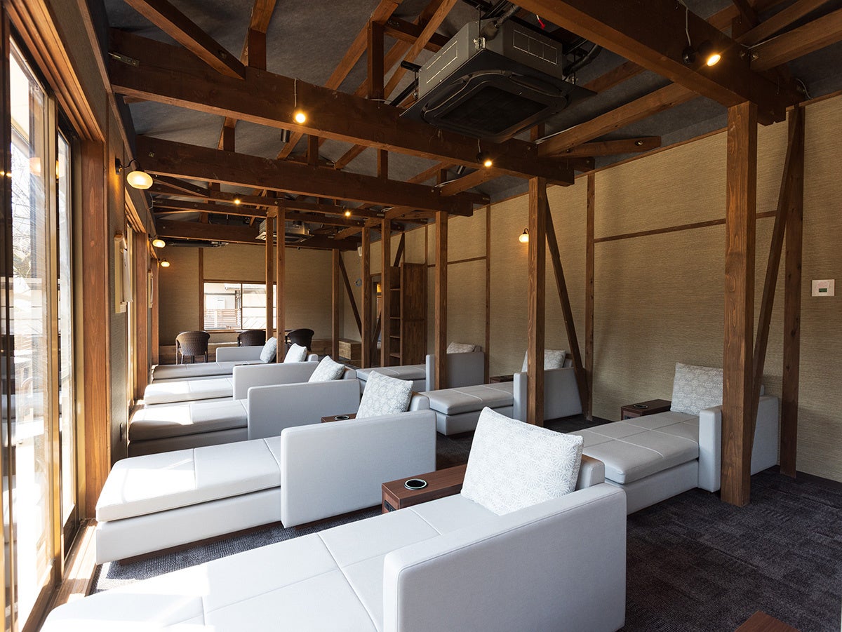 館内着着用専用エリアのご利用の場合、受付にて館内着をお渡しいたします。ビールやおつまみなど販売する軽食コーナーや休憩処の 「木もれび庵」 では、館内着でお寛ぎいただける空間となっております。メインの 「大露天風呂」 は、雄大な荒神山を眺めながら入ることができ、水沼の湯につかりながら心ゆくまでリラックスいただき、美しい大自然とともにお楽しみください。