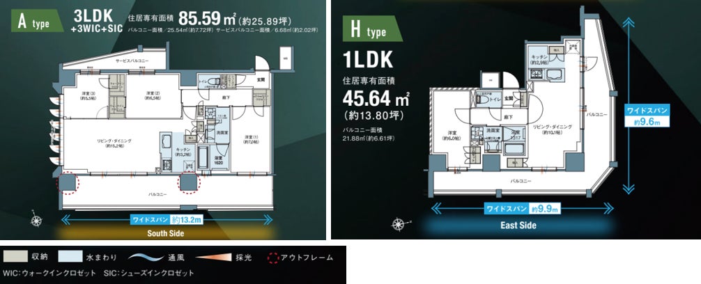 南向き中心※、幅広いライフスタイルに応える1LDK~3LDKのプラン。