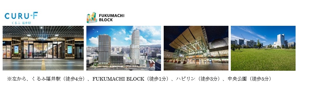 本物件は、福井駅前電車通り北地区B街区第一種市街地再開発事業として、JR「福井」駅西口の通称「三角地帯」に誕生します。1階には商業施設、2階には医療福祉施設を予定しており、福井駅前電車通り北地区A街区第一種市街地再開発事業に引き続き、進化を遂げる福井の未来の一翼を担います。JR「福井」駅徒歩4分、隣接には複合大型施設の「FUKUMACHI BLOCK」、西武福井店があり、JR北陸新幹線の延伸で盛り上がりを見せる福井駅前の賑わいを存分に享受できる、全62邸のデザインレジデンスです。