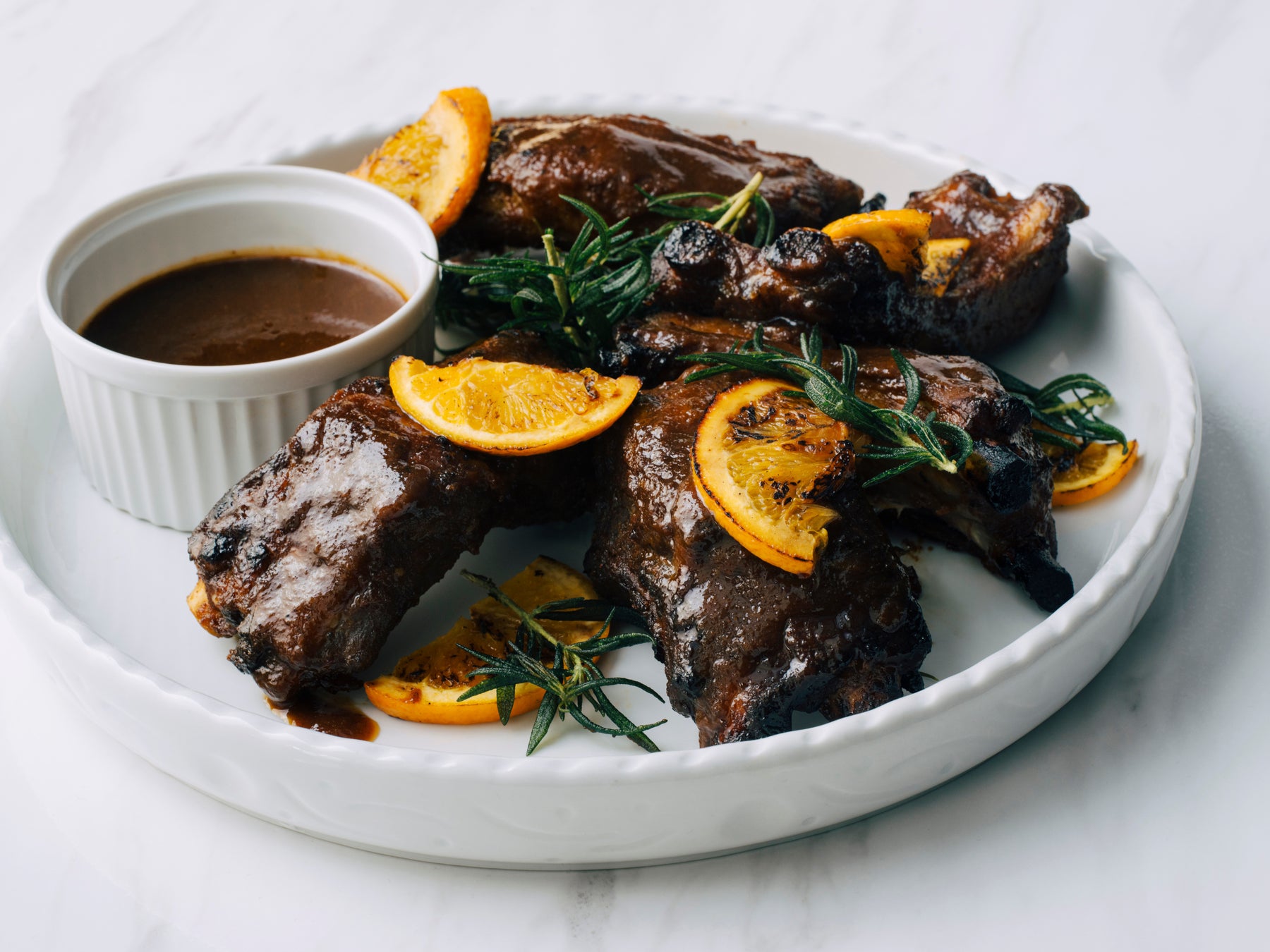 骨付き肉の豪快なうまみとロース肉のやわらかさを併せ持つバックリブに、メープルとオレンジの風味をまとわせたBBQスタイルのグリル。やわらかくジューシーな肉のうまみに、メープル甘さとオレンジの酸味が絶妙に絡み合います。