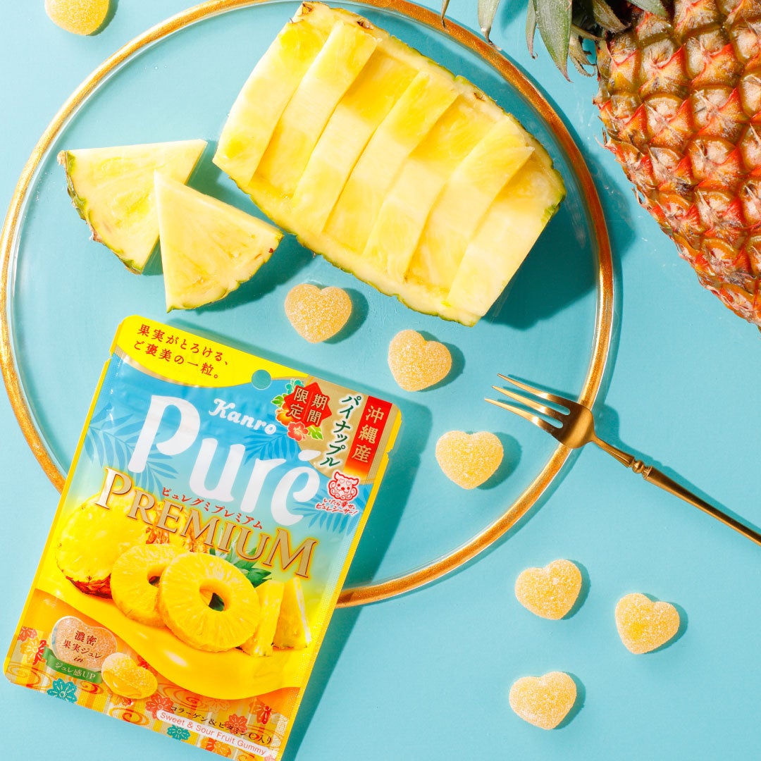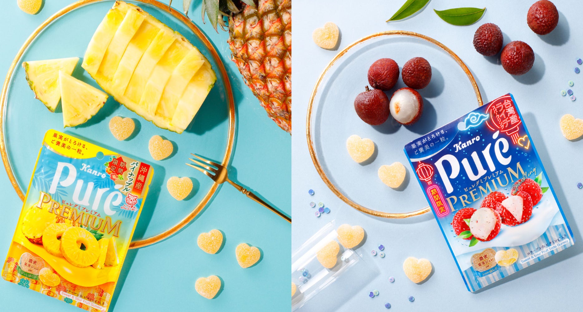 果汁たっぷり、濃密な味わい。ピュレグミプレミアムに夏の新フレーバーが登場! カンロ 「ピュレグミプレミアム沖縄産パイナップル」 「ピュレグミプレミアム台湾産ライチスパークリング」 新発売
