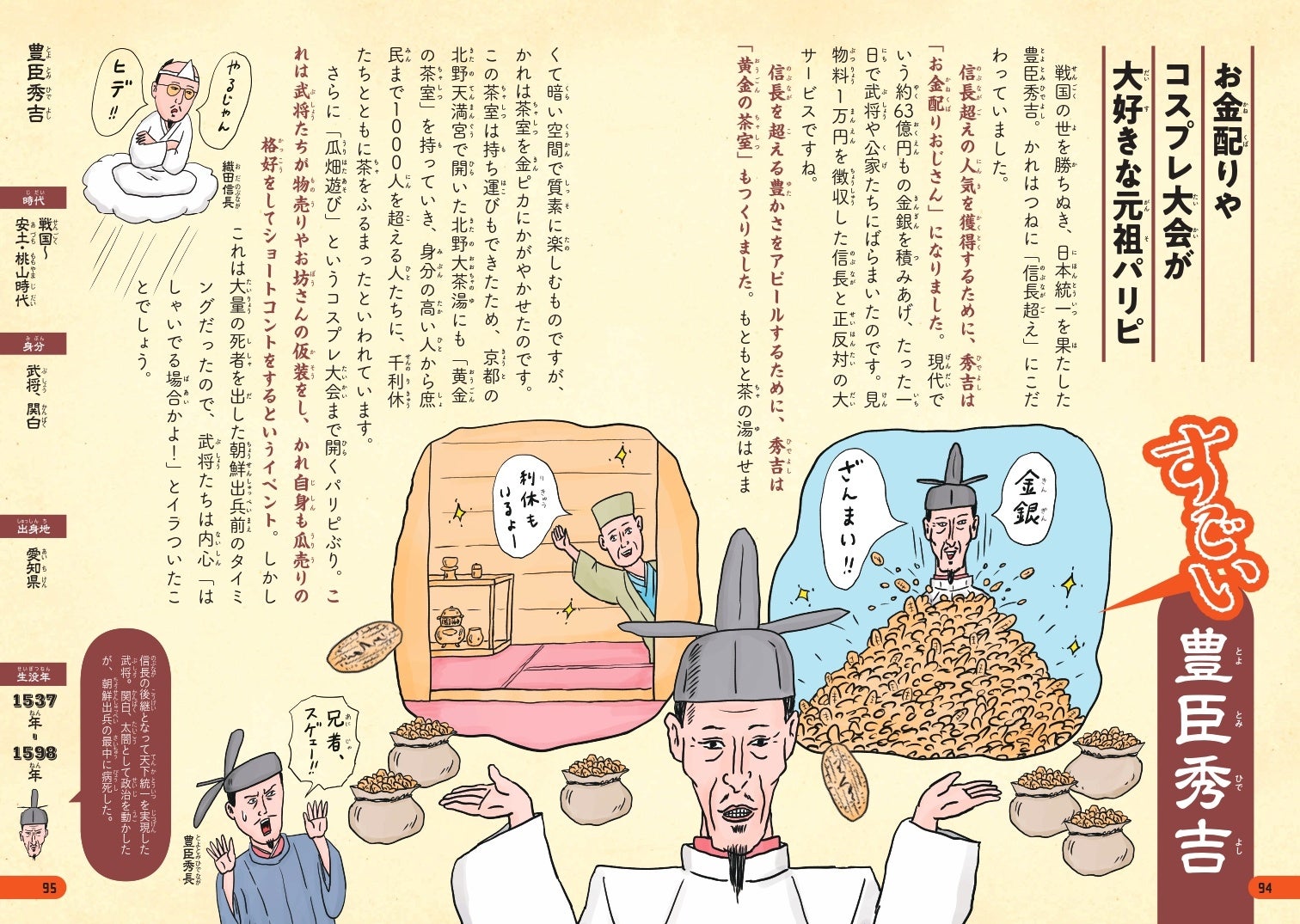 最新刊では、文化を形づくってきた偉人たちに注目。人が「残したい」と願い、記録し受け継いできたものの積み重ねこそが文化であり、「やばい」エピソードはその象徴でもあります。昨年の大河ドラマで話題になった蔦屋重三郎や、今年の大河ドラマの顔・豊臣秀吉など、本シリーズ史上でもとびきりの「すごい」と「やばい」を、今回も幅広く収録しました。