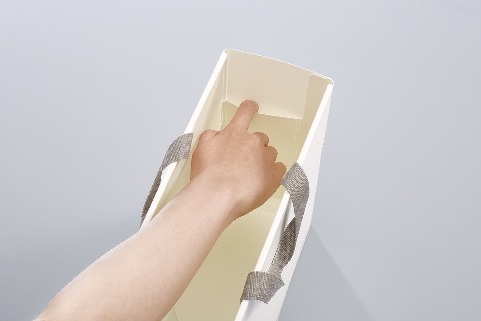 さっと持ち運びできる取っ手付きで、家庭内やオフィス内でのちょっとした移動に便利です。