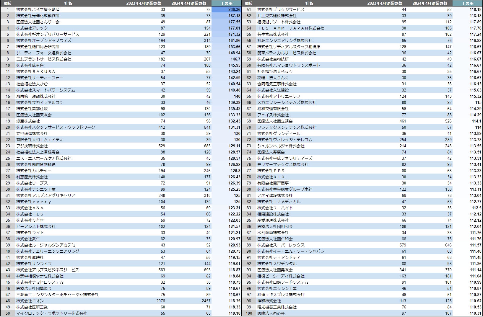 【相模原市】成長企業ランキングTOP100!/SalesNow DBレポート